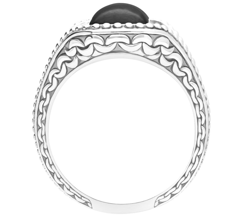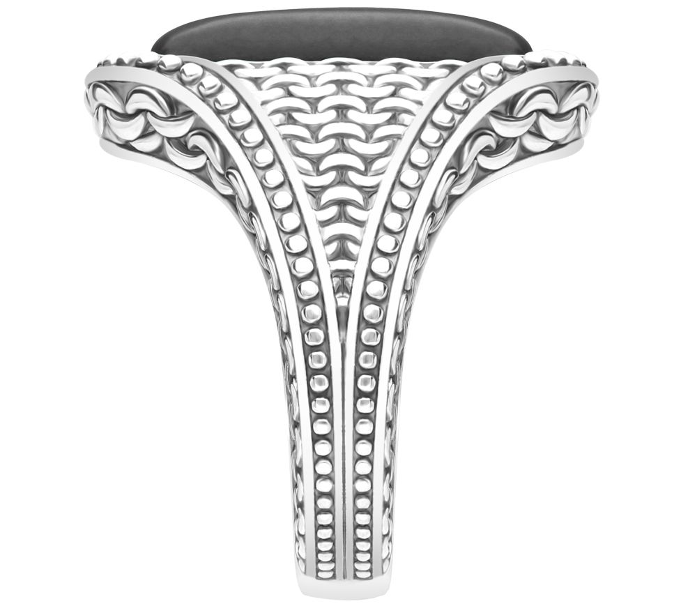 Purl-knit north-south ring with inlaid black onyx cabochon and beaded detail