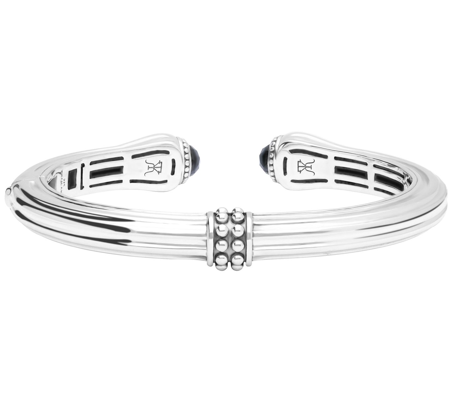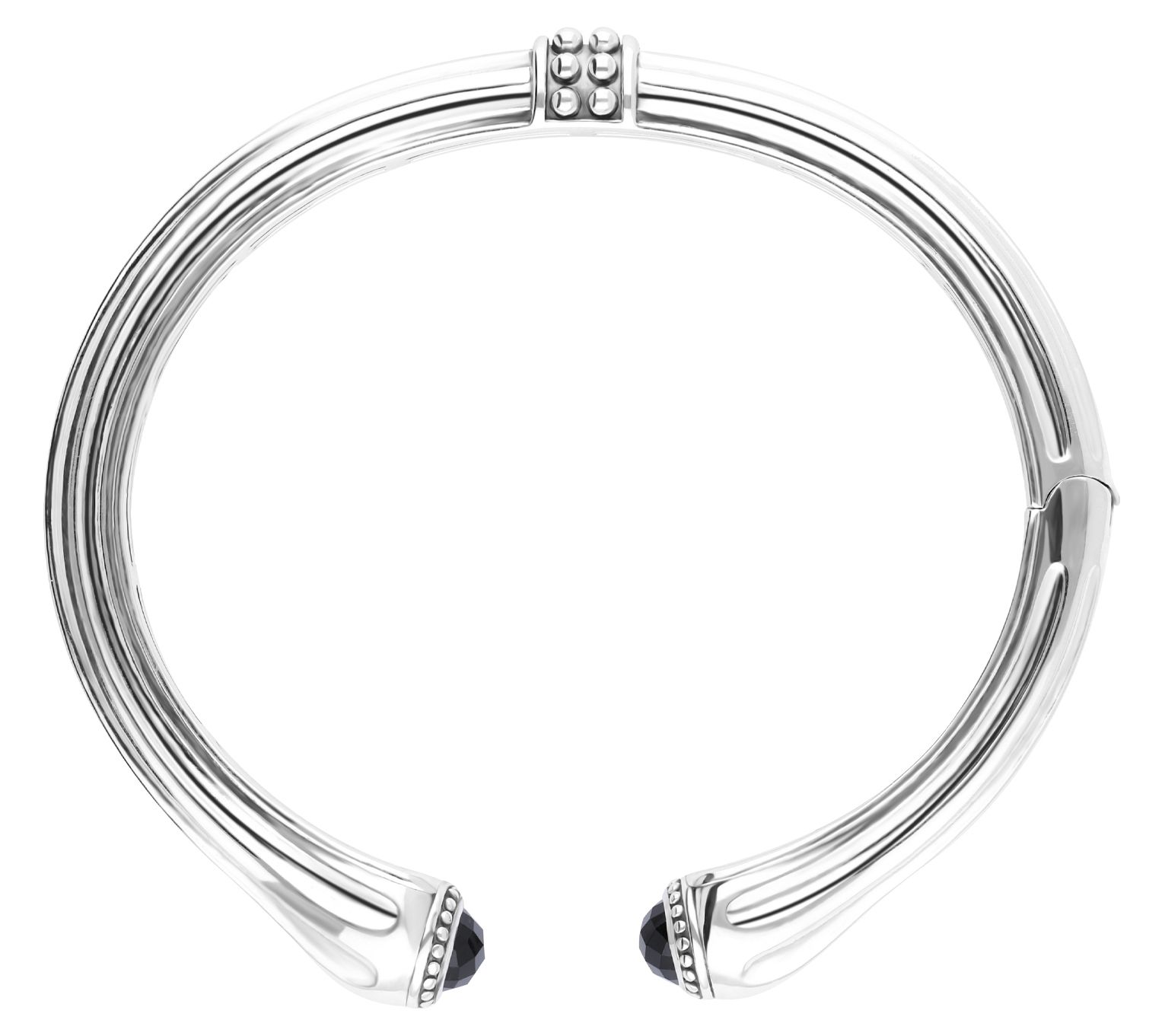 - Cuff bracelet with faceted, bezel-set onyx and beaded detail on ends