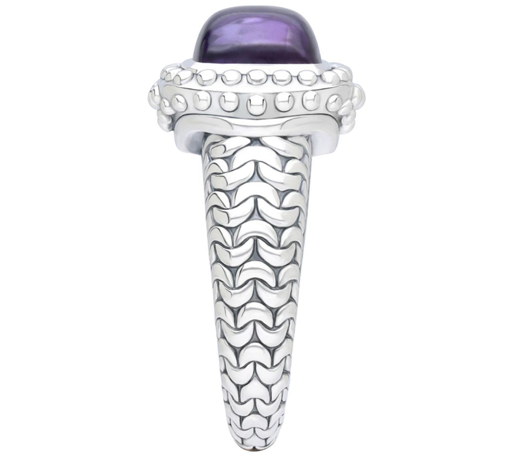From brunch to the boardroom, this sterling silver ring is set to impress with its beaded and purl-knit design that showcases a bold amethyst. From Tiffany Kay Studio.