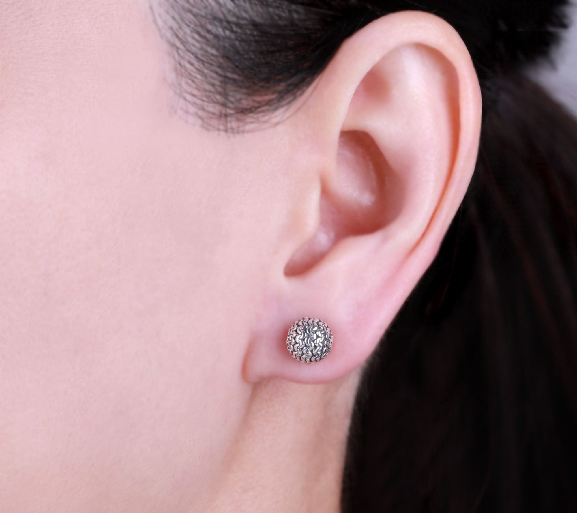 Swap out your basic studs for these gorgeous ball earrings! Each one is crafted in sterling silver and showcases a bold purl-knit texture. From Tiffany Kay Studio.