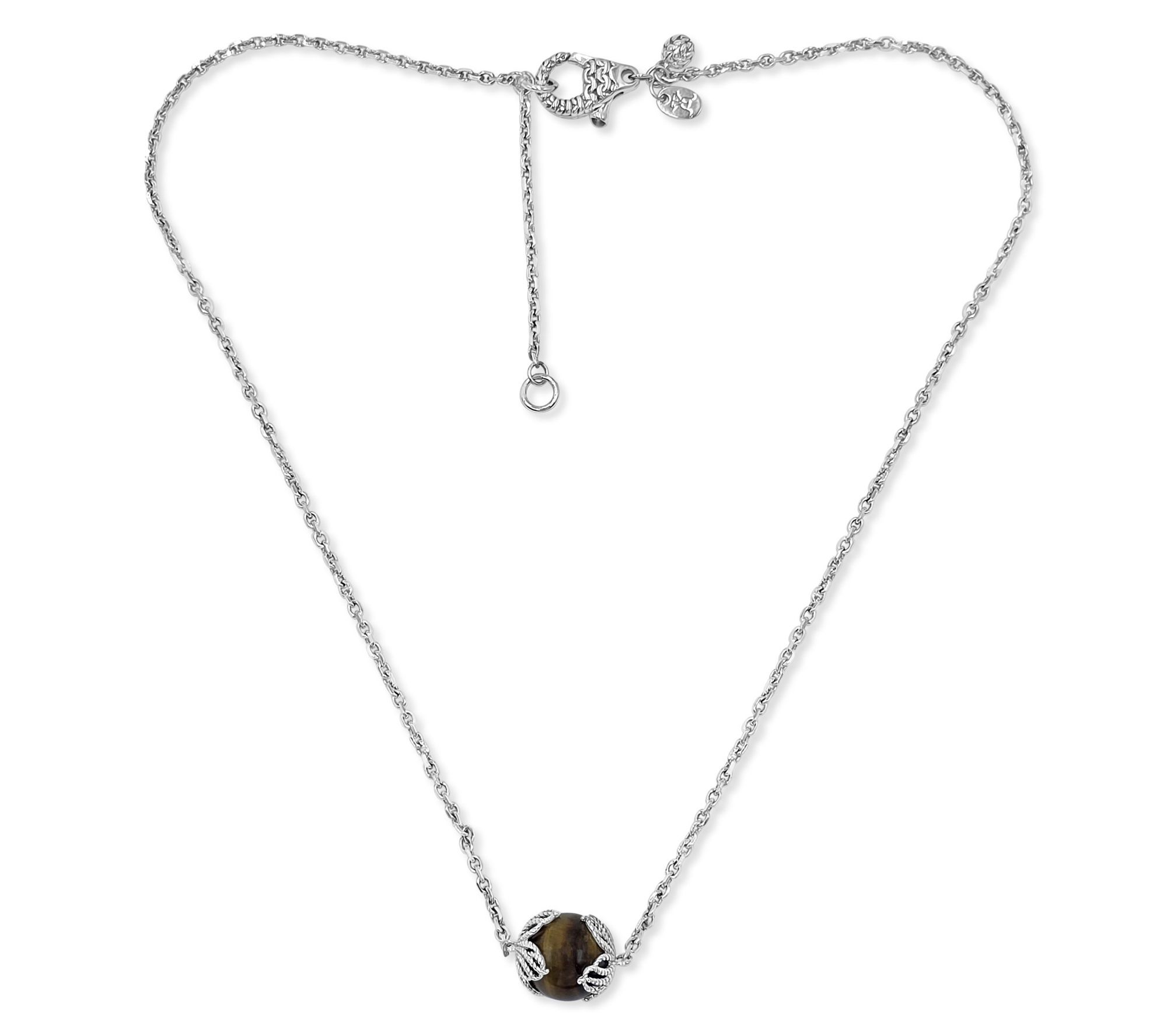 A hint of warm earthiness blends with artisan detail, making this piece a standout for both weekday style and weekend adventures. A gorgeous tiger's eye bead anchors the design, framed by textured sterling silver caps, while a signature lobster clasp showcases an extra touch of gemstone shine. Effortless on its own or layered, it brings luminous depth to any look. From Tiffany Kay Studio.