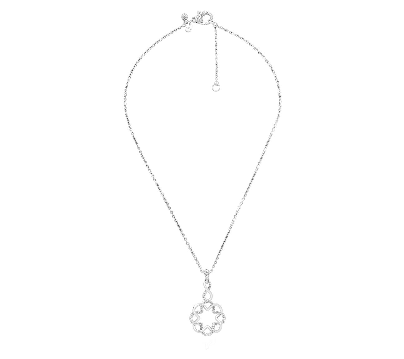 With its openwork infinity pendant, this textured, sterling silver necklace lets the color and beauty of your outfit shine through. From Tiffany Kay.