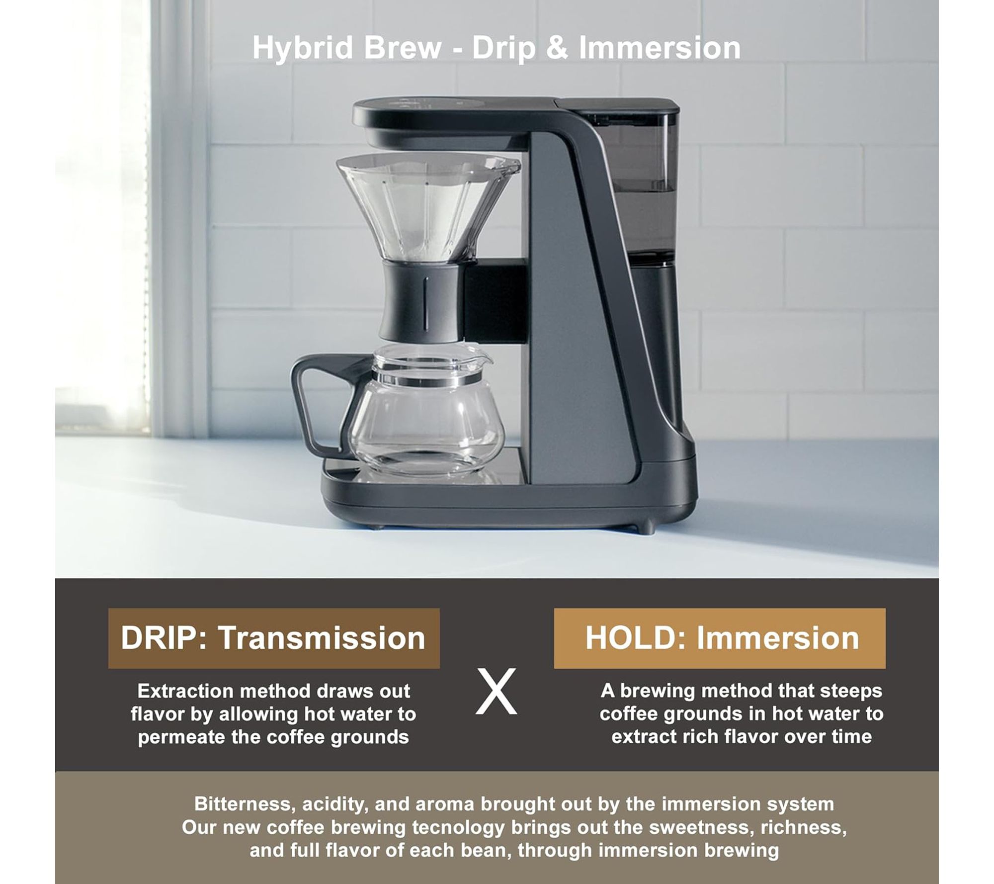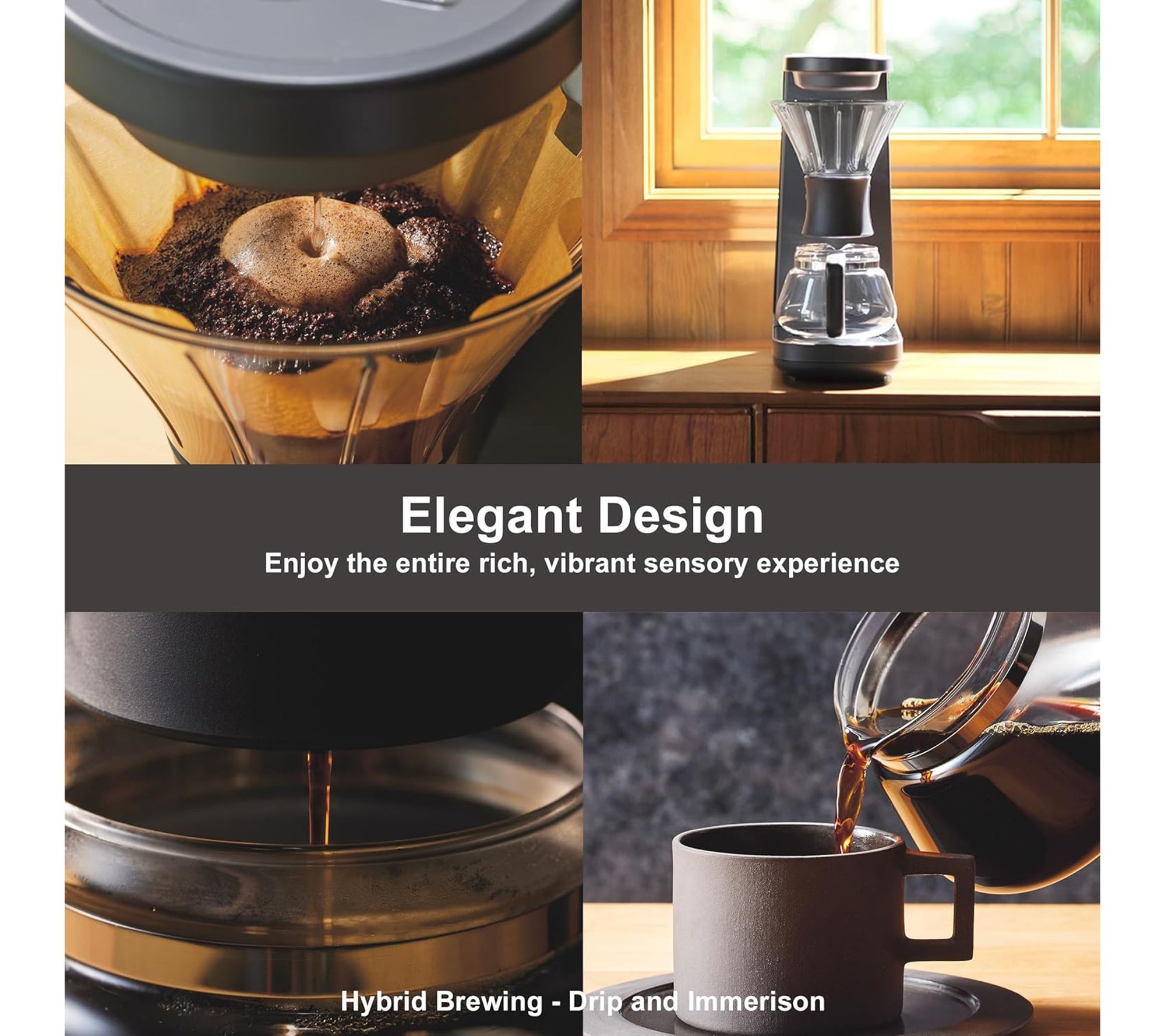 • Combines pour-over drip and immersion brewing methods for rich, flavorful coffee