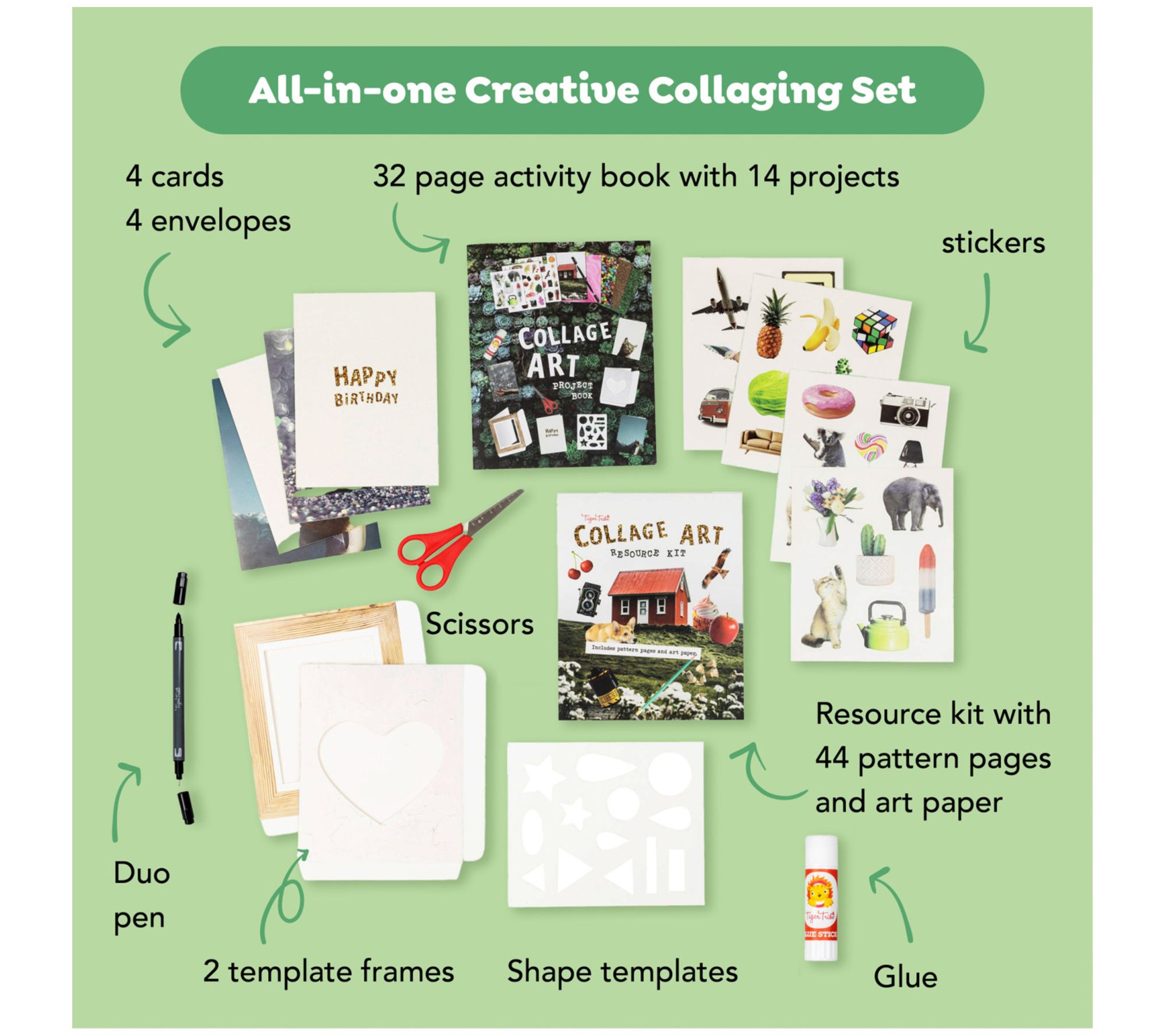 Kids will love uncovering their inner artist with this all-in-one collage art set. Packed with everything needed to create beautiful collages, this kit is perfect for sparking imagination and developing new crafting skills. Dive into a world of patterns, shapes, and colors for hours of creative fun. From Tiger Tribe.