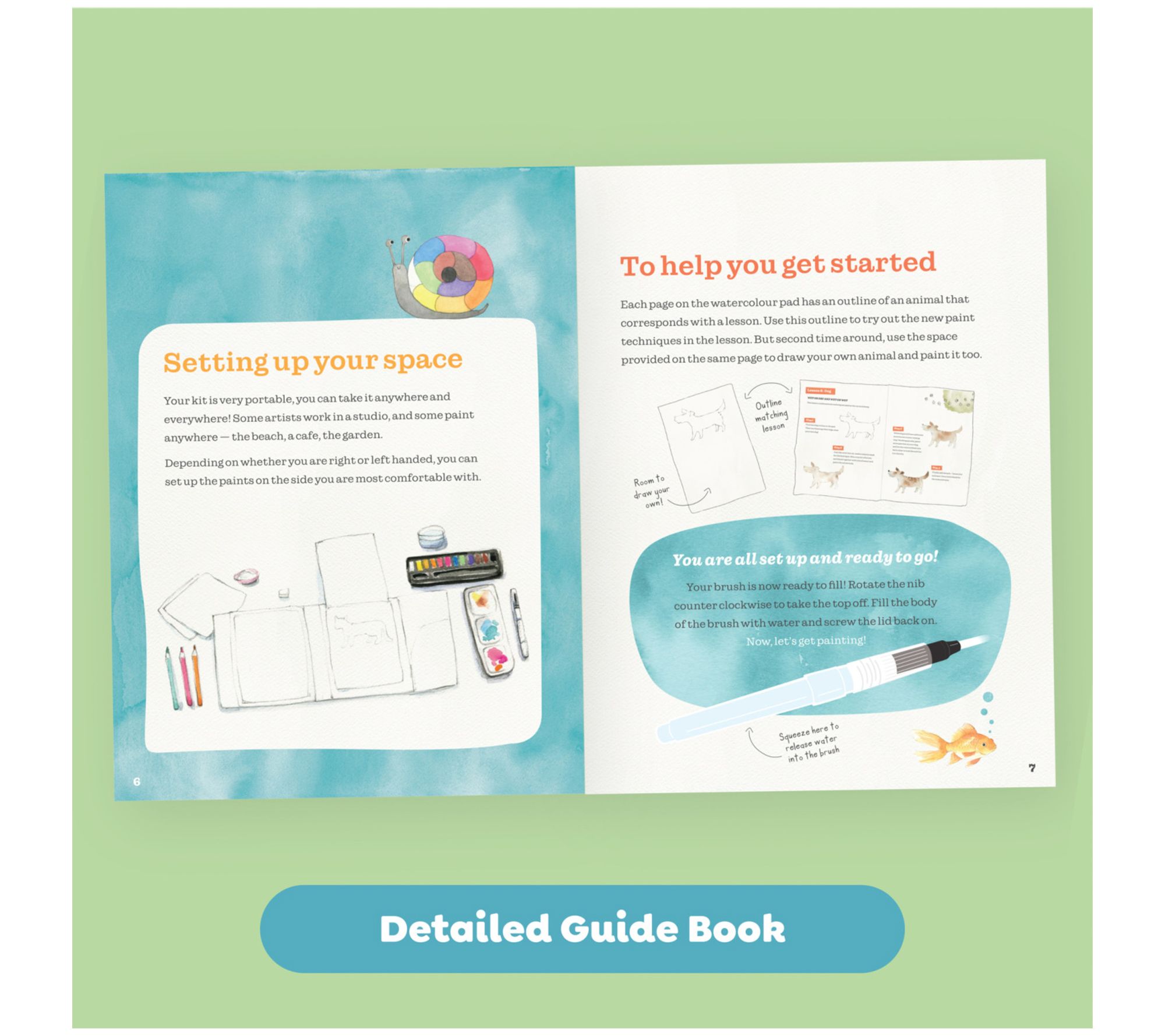Help your child unleash their creativity with the Tiger Tribe how to paint watercolor -- Animals set. This detailed guide offers 18 step-by-step lessons on watercolor techniques like color blending and layering, perfect for capturing the beauty of your favorite animals. The mess-free waterbrush makes painting a breeze, keeping the focus on fun. From Tiger Tribe.