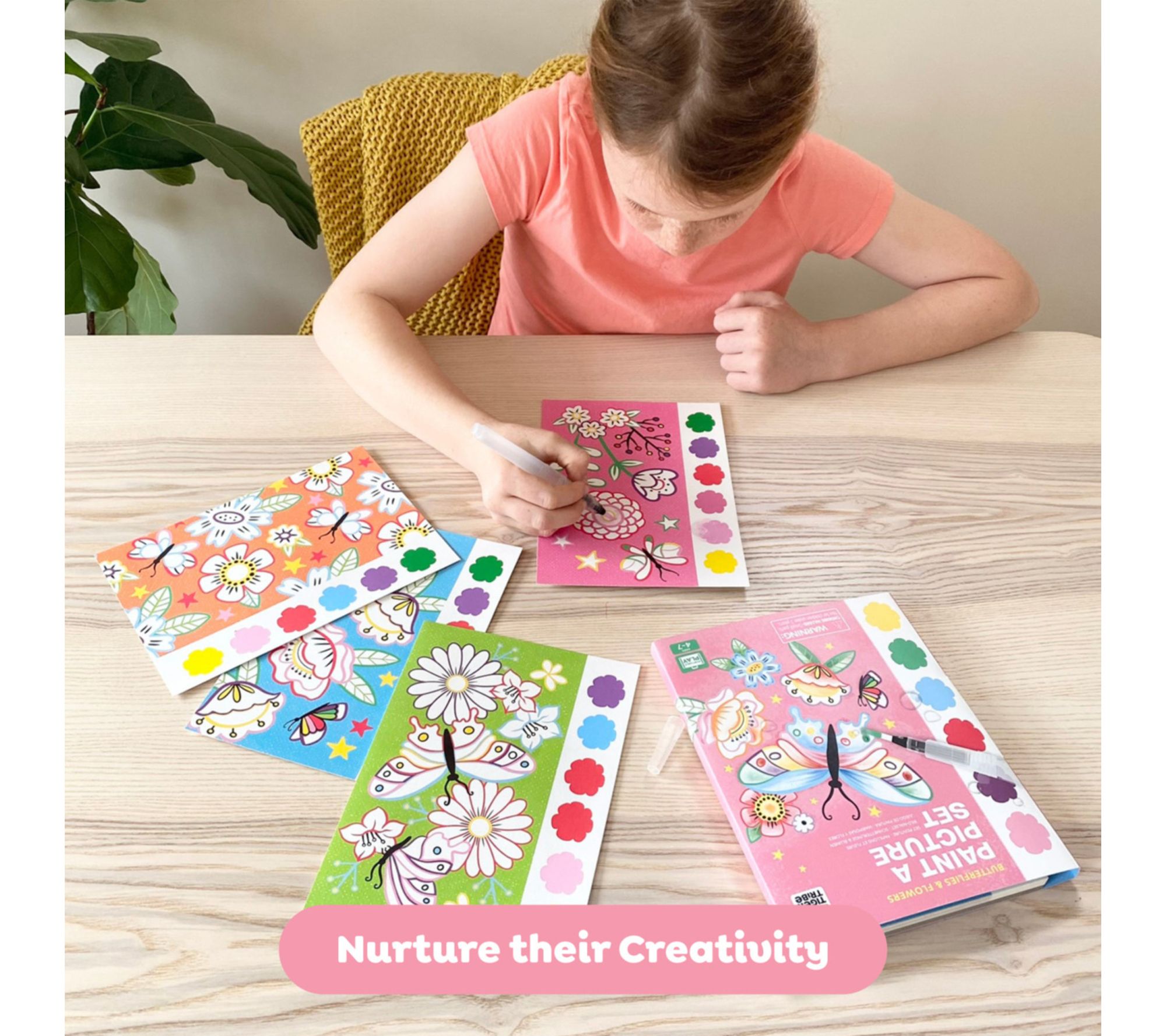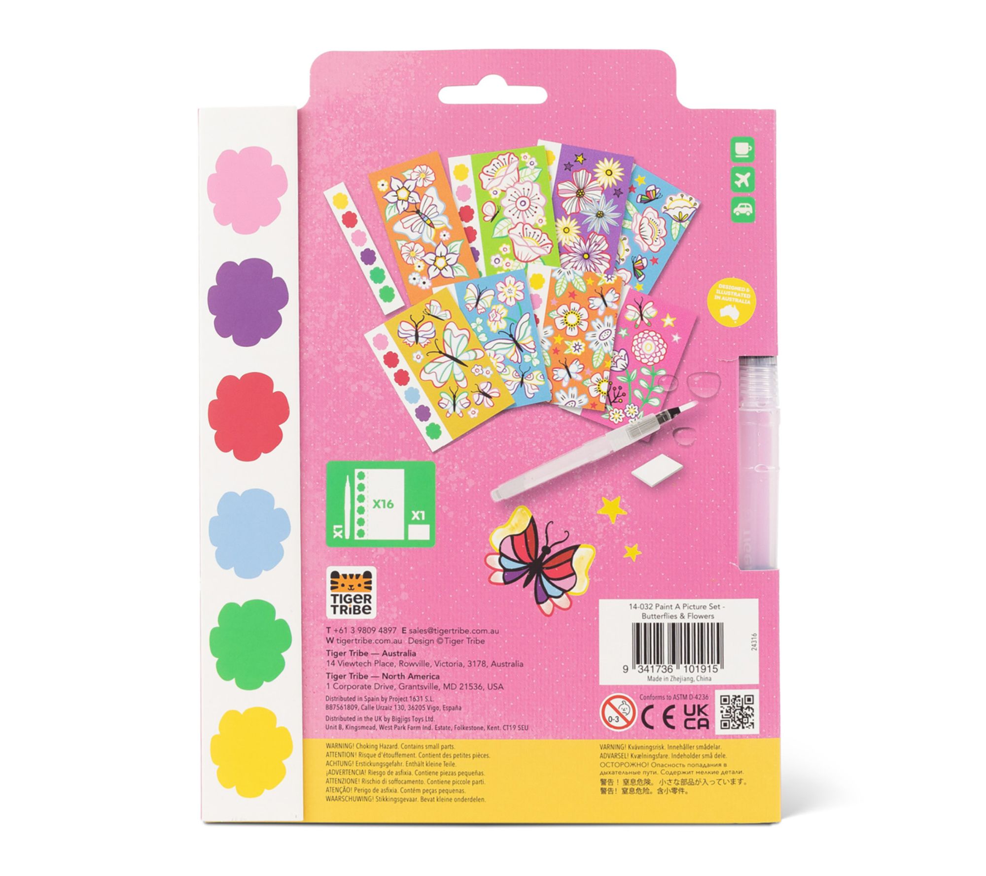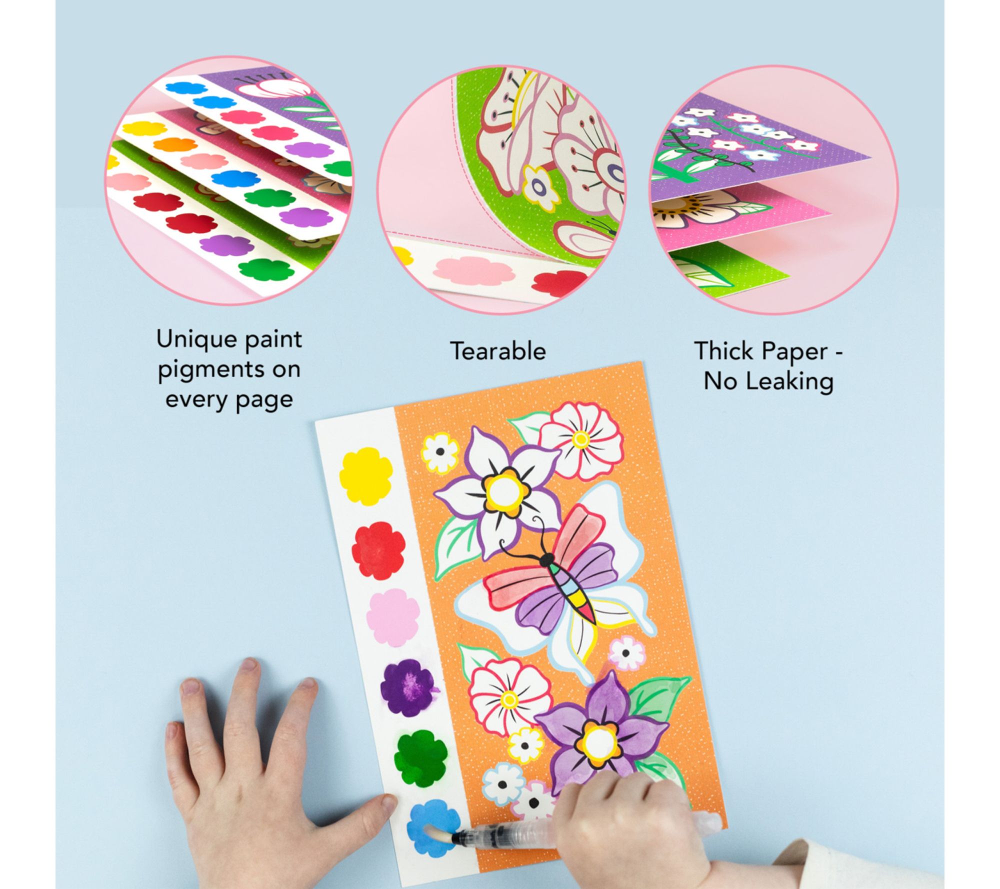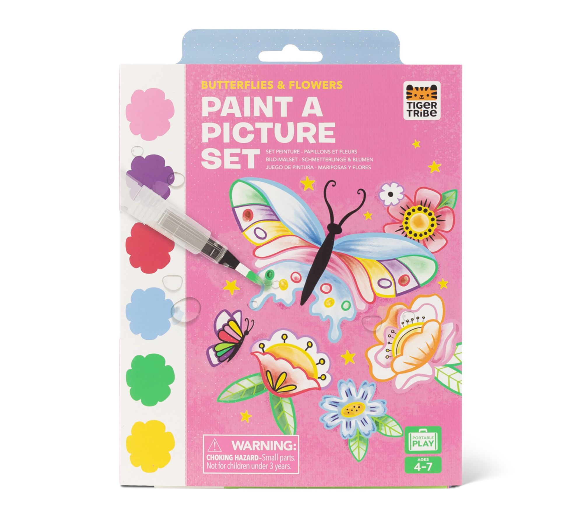 Bring color and imagination to afternoons at home or on the go with this kids watercolor art set, packed with beautifully illustrated butterflies and flowers. Perforated pages make displaying each masterpiece a breeze, while built-in paint pigments, a refillable water brush, and a handy sponge tool ensure creative fun is always within reach -- no mess, just pure artistic joy. From Tiger Tribe.