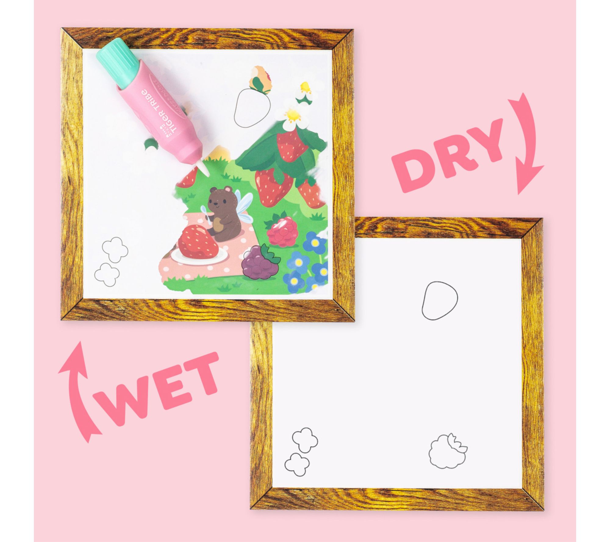 • Includes four double-sided reusable magic painting cards and one magic water-brush