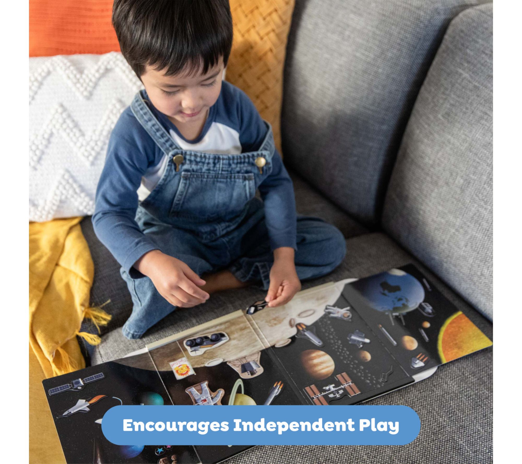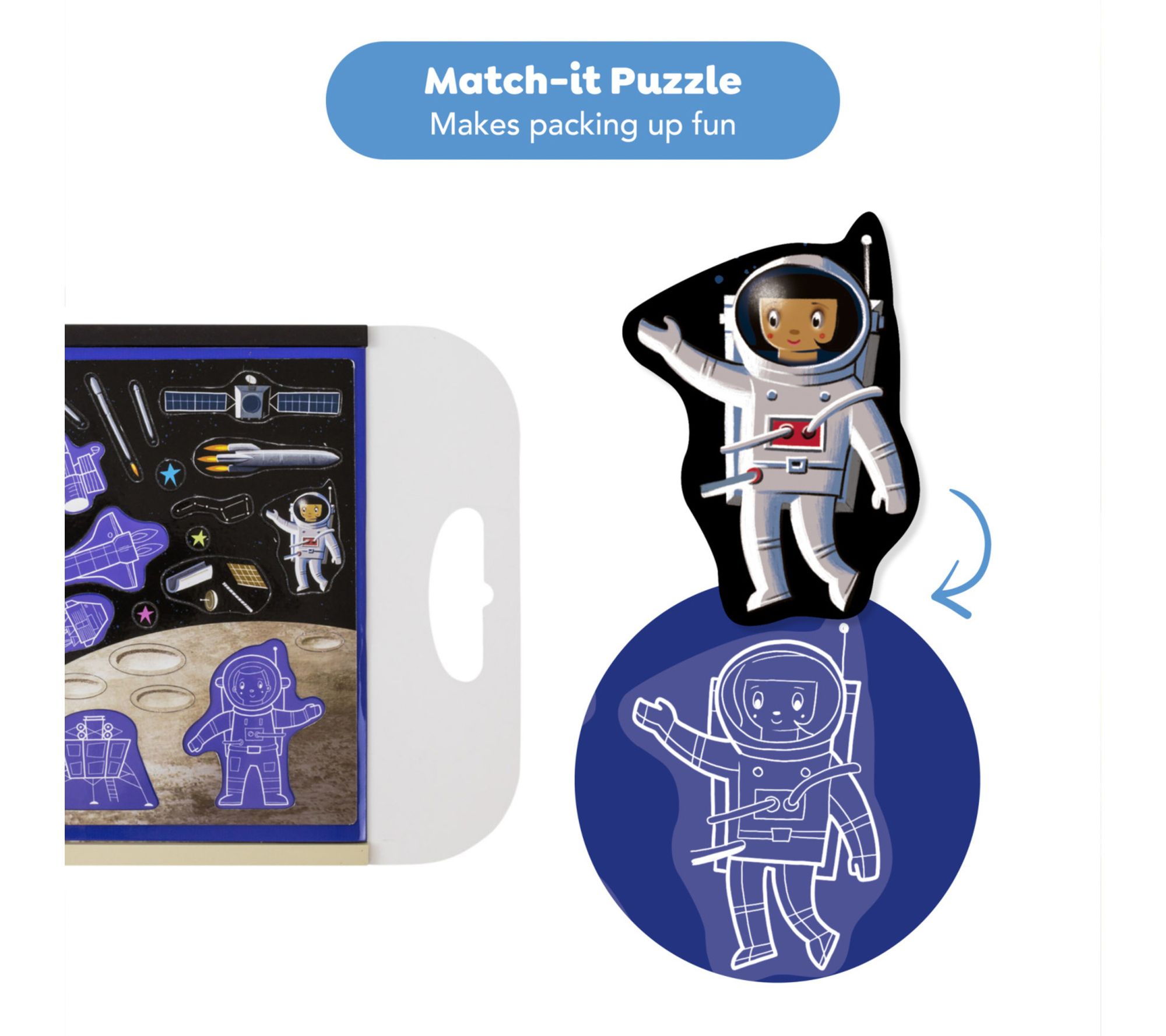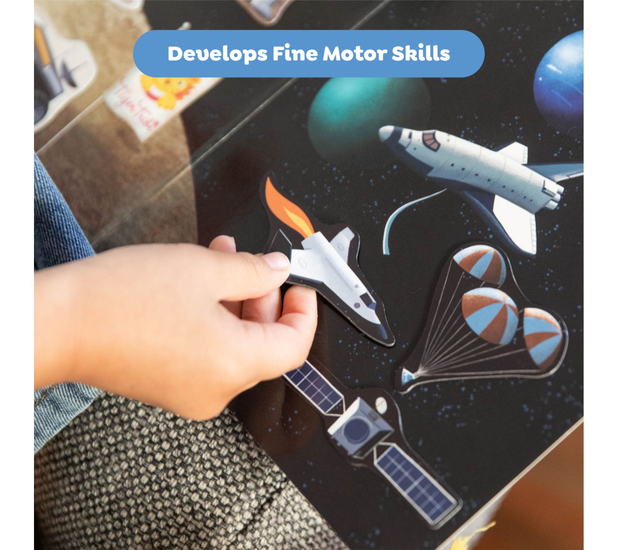 Excitement soars to new heights as kids invent cosmic adventures with this magnetic play set -- perfect for sparking out-of-this-world creativity at home or on the go. Whether they're piloting rockets or exploring new planets, children can arrange press-out magnets on a fold-out scene, then neatly puzzle them back for easy clean-up. From Tiger Tribe.