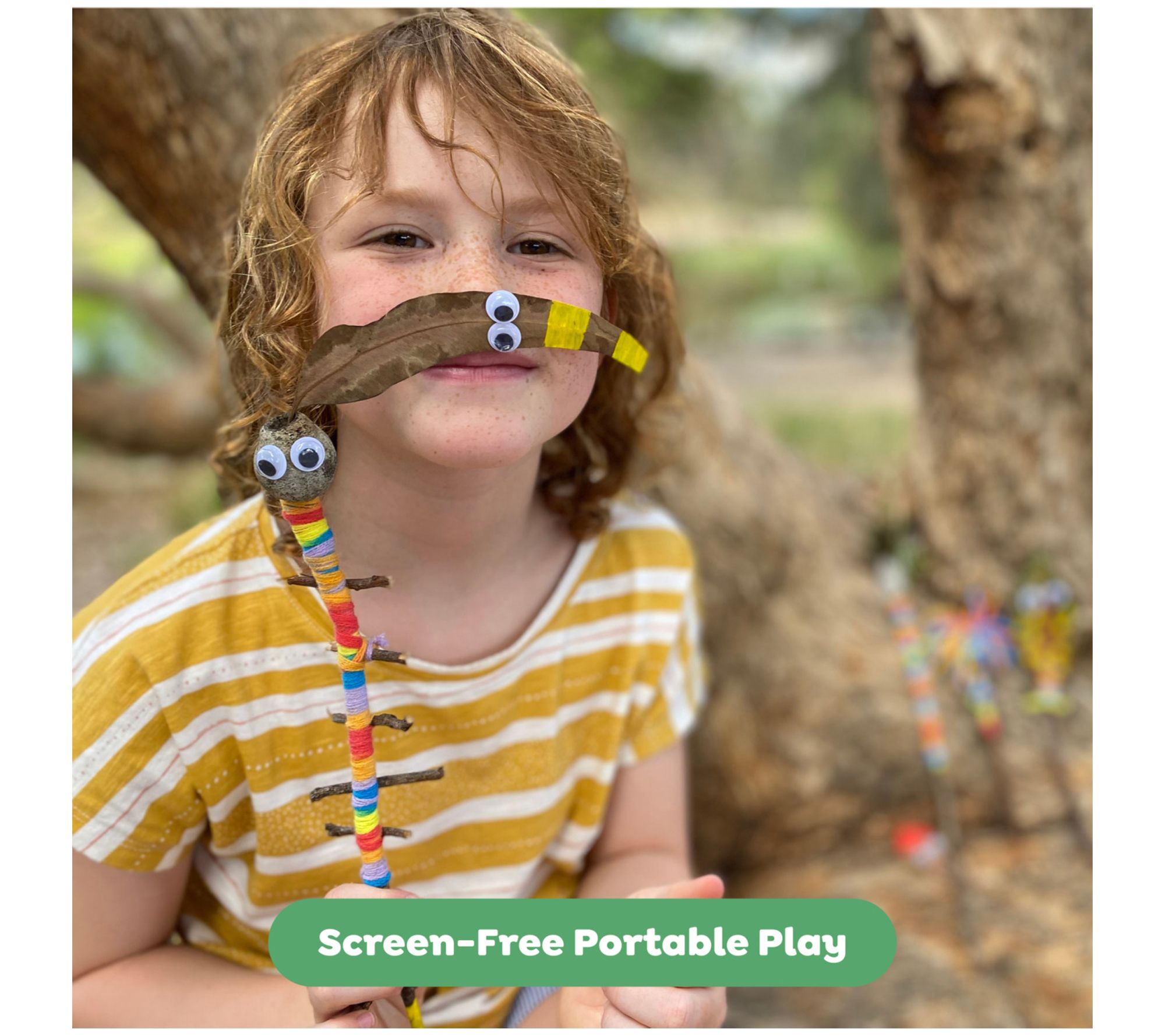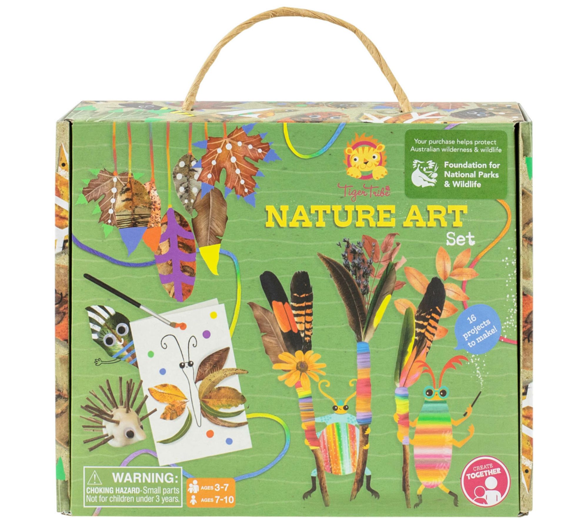 Unleash your child's creativity with the Tiger Tribe nature art set! This all-inclusive kit is perfect for parent-child bonding as you transform natural treasures like leaves and sticks into 16 amazing art projects. Guided by a colorful activities book, you'll craft leaf masks, nature crowns, clay critters, and more. Ideal for kids aged 3 through 7 with parent help, or 7 through 10 for independent fun. From Tiger Tribe.