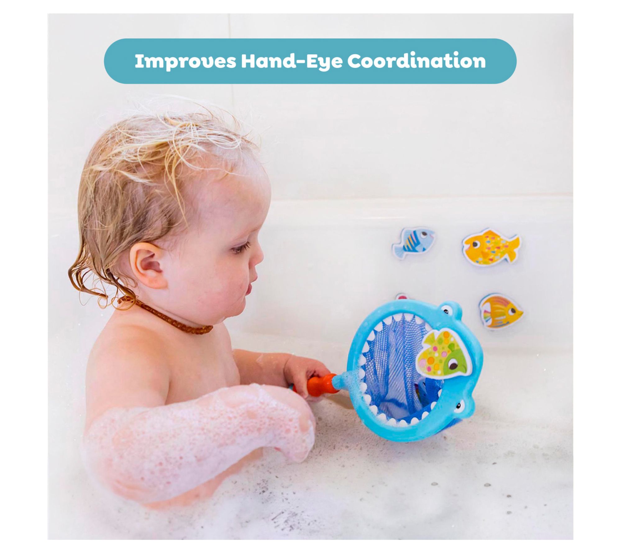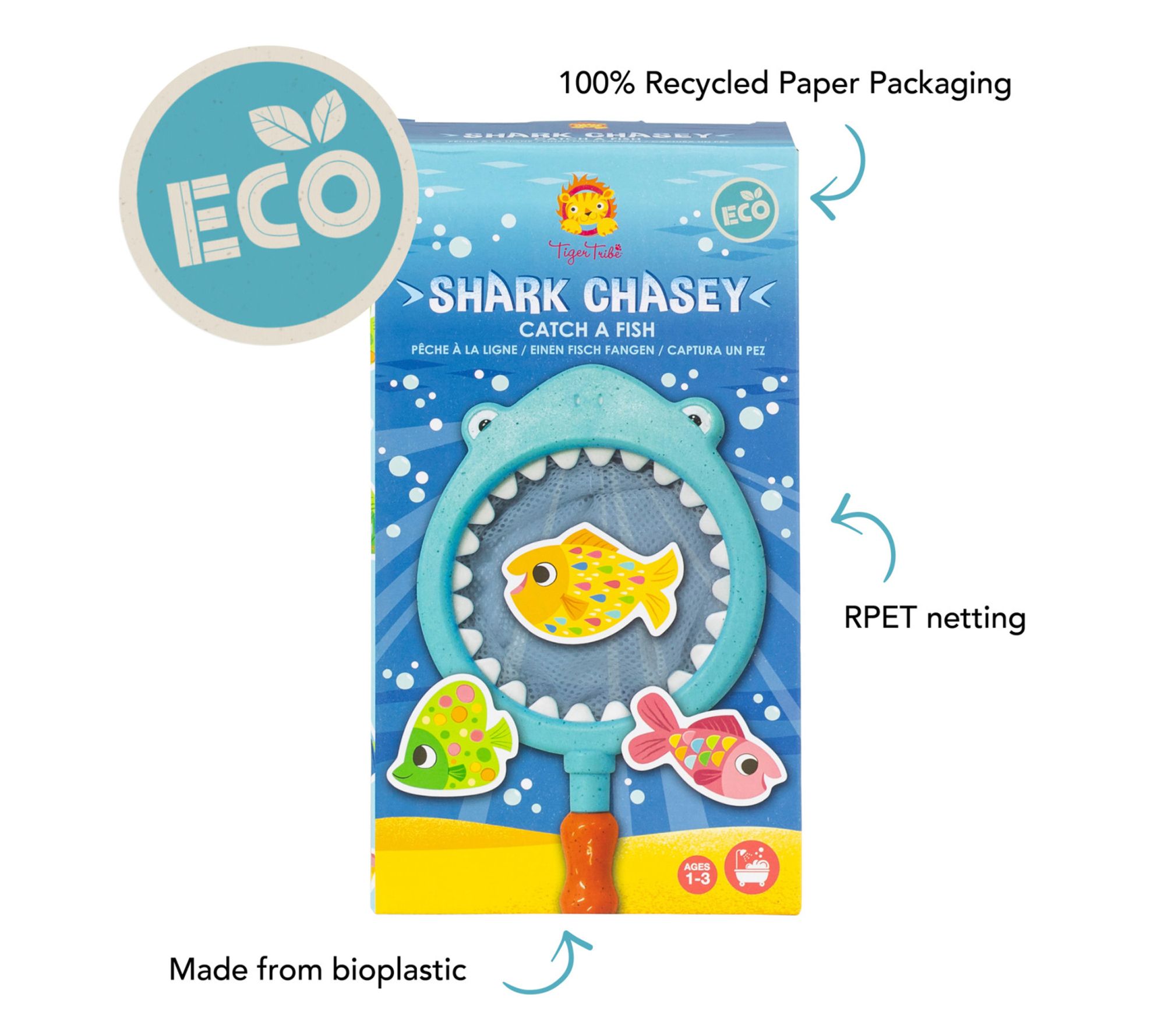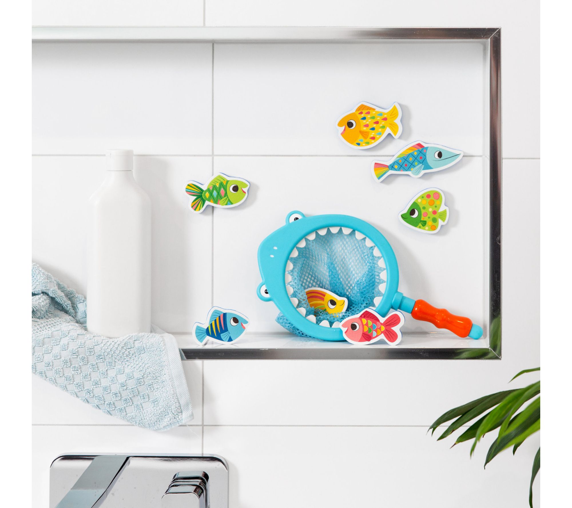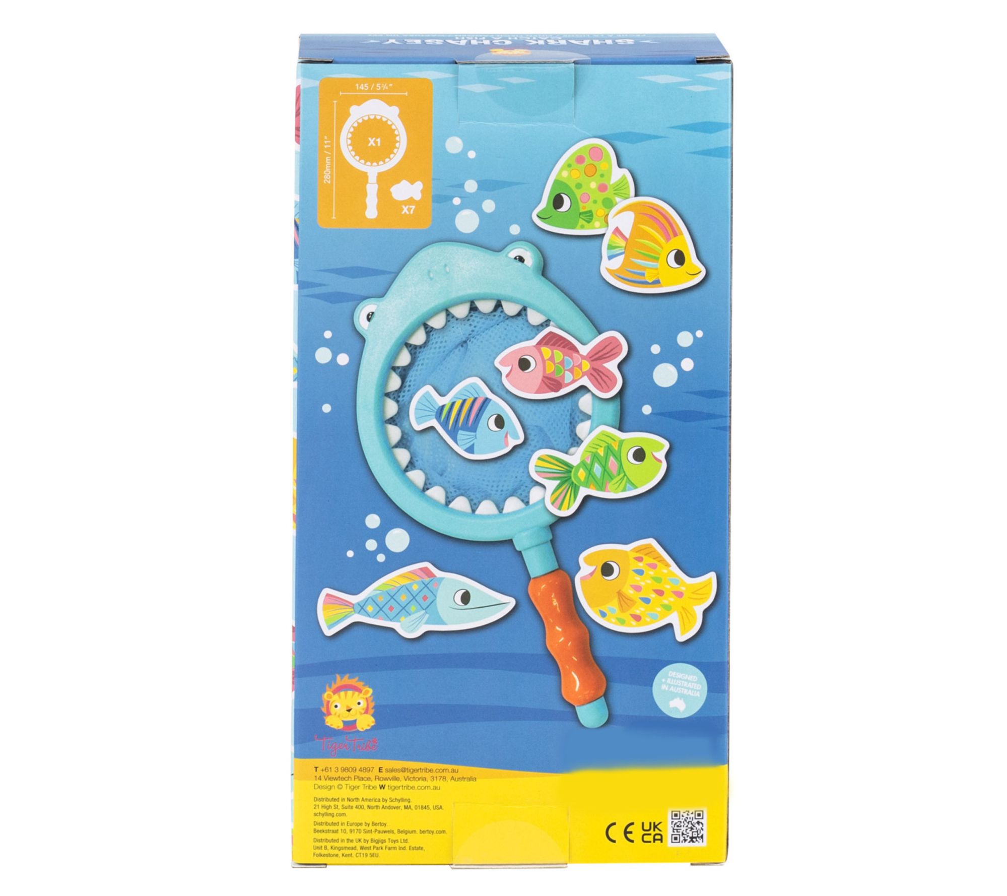 Make bath time fun and engaging with the Shark Chasey Catch a Fish Bath Toy set. Perfect for little ones, this set includes seven colorful fish and a kid-friendly shark net. From Tiger Tribe.