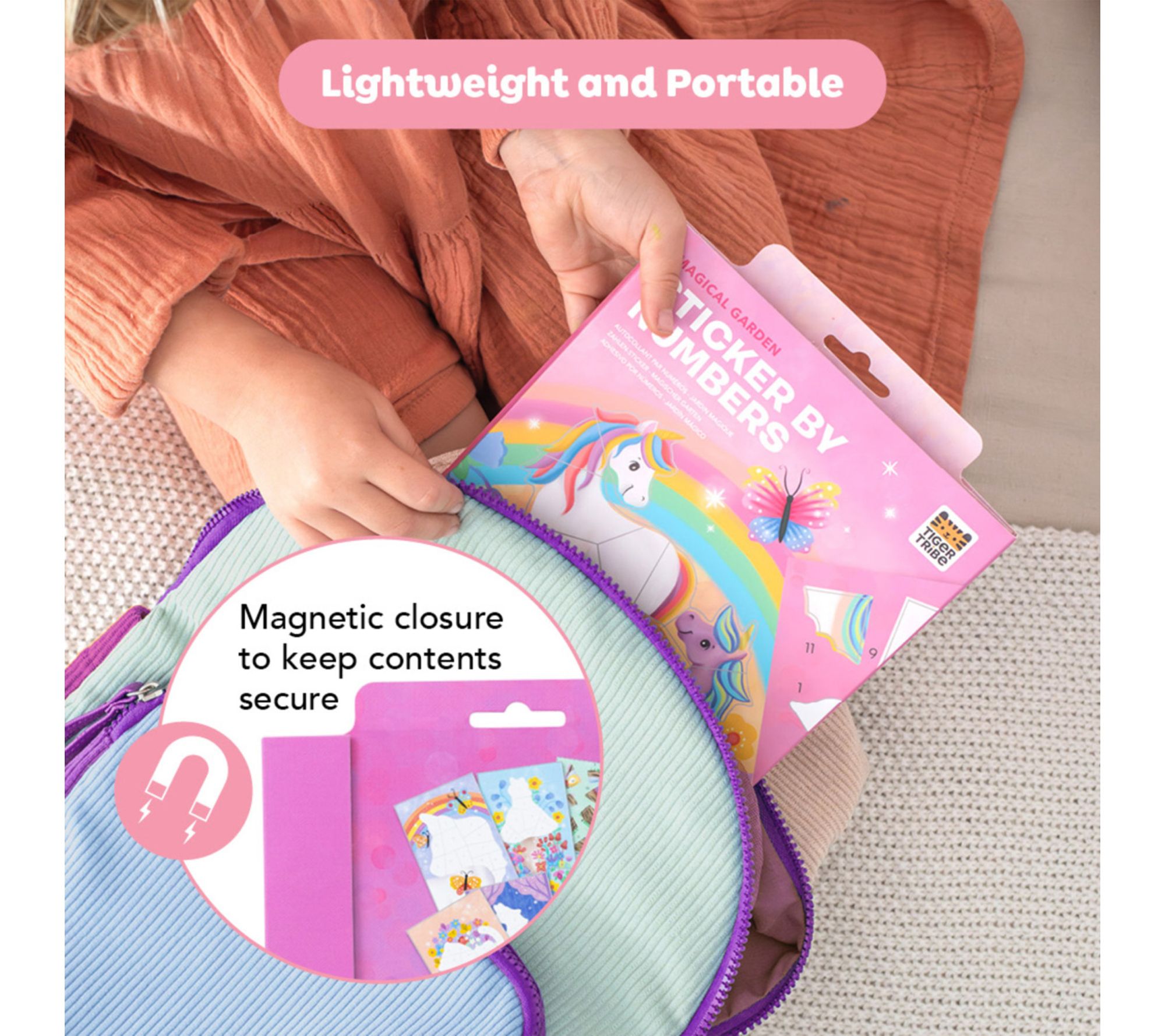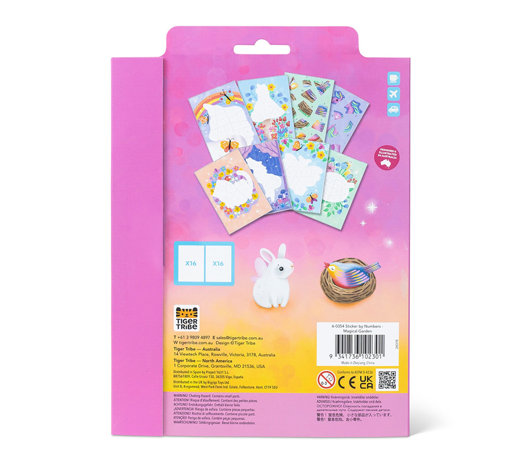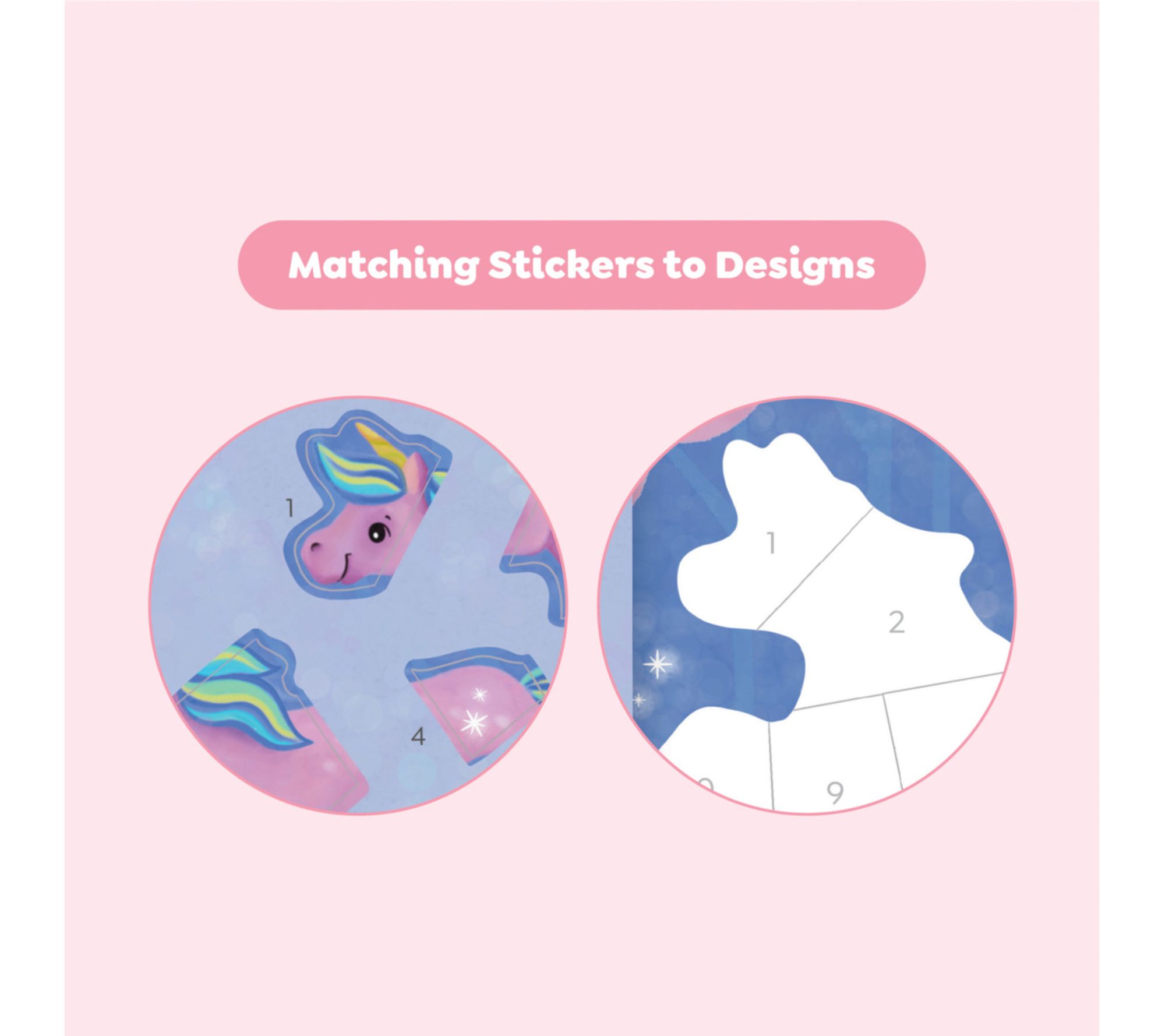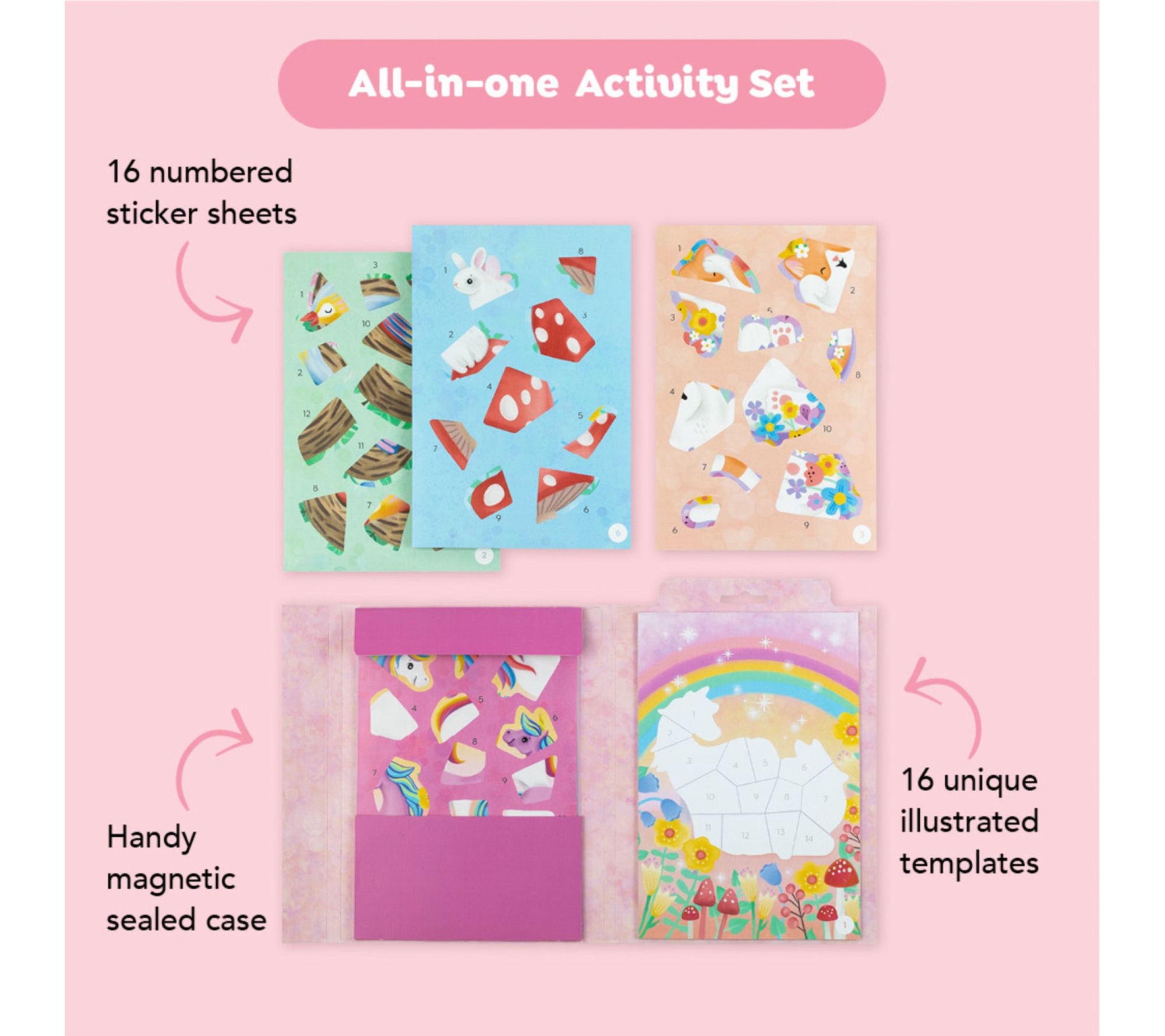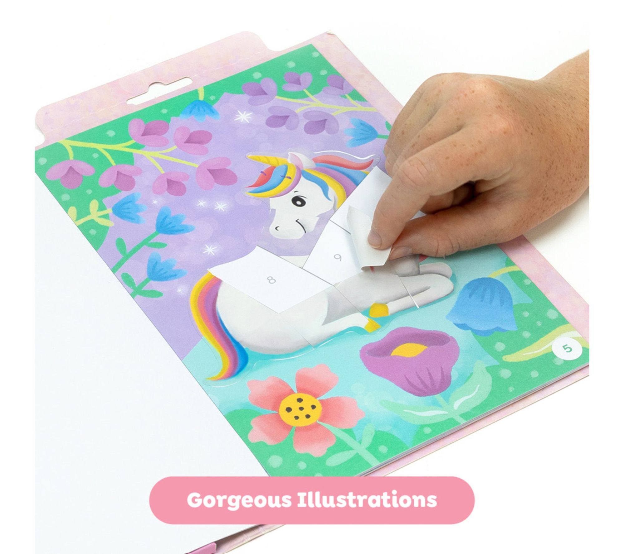 Bring color and wonder to any day with this arts and crafts Sticker by Numbers set, featuring enchanting unicorns, fairies, and bunnies waiting to come to life. Kids will delight in matching stickers to numbers and watching magical scenes appear before their eyes -- whether on road trips, after school, or during a creative afternoon at home. From Tiger Tribe.