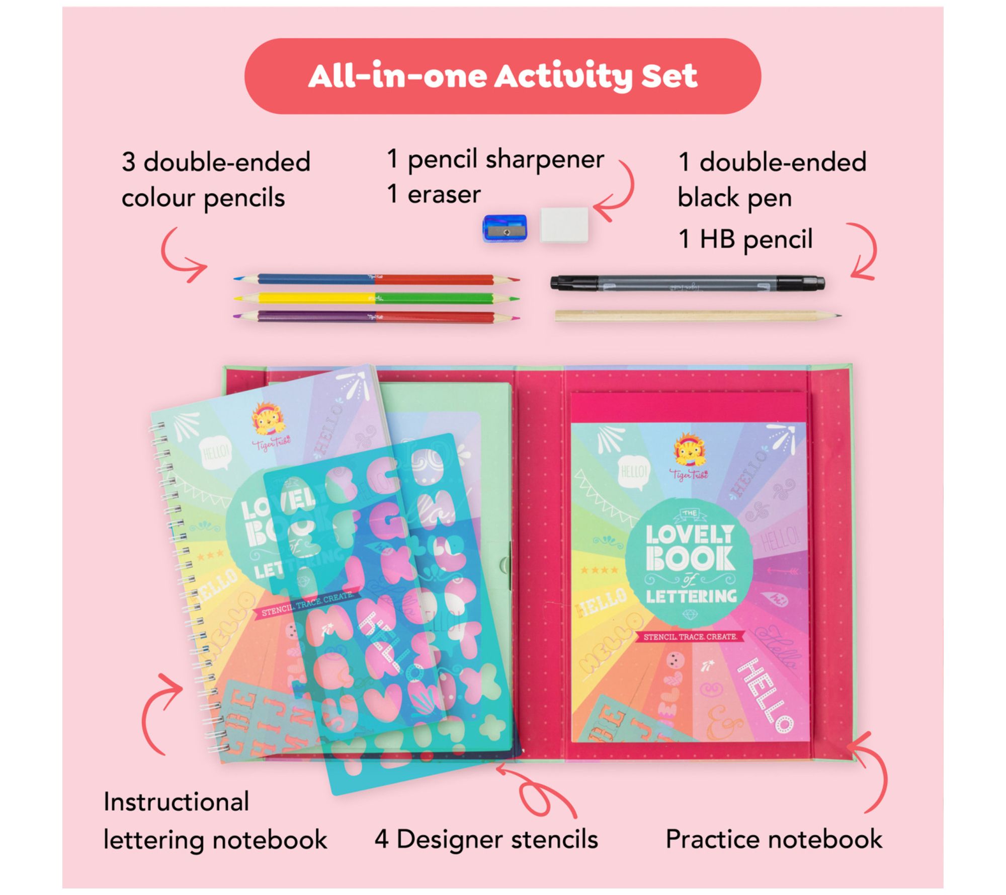 Dive into the art of lettering with The Lovely Book of Lettering from Tiger Tribe. Perfect for budding graphic designers and seasoned artists alike, this comprehensive kit provides all the tools and guidance needed to craft captivating designs. Whether you're stenciling, tracing, or experimenting with new techniques, you'll find endless creative possibilities. From Tiger Tribe.