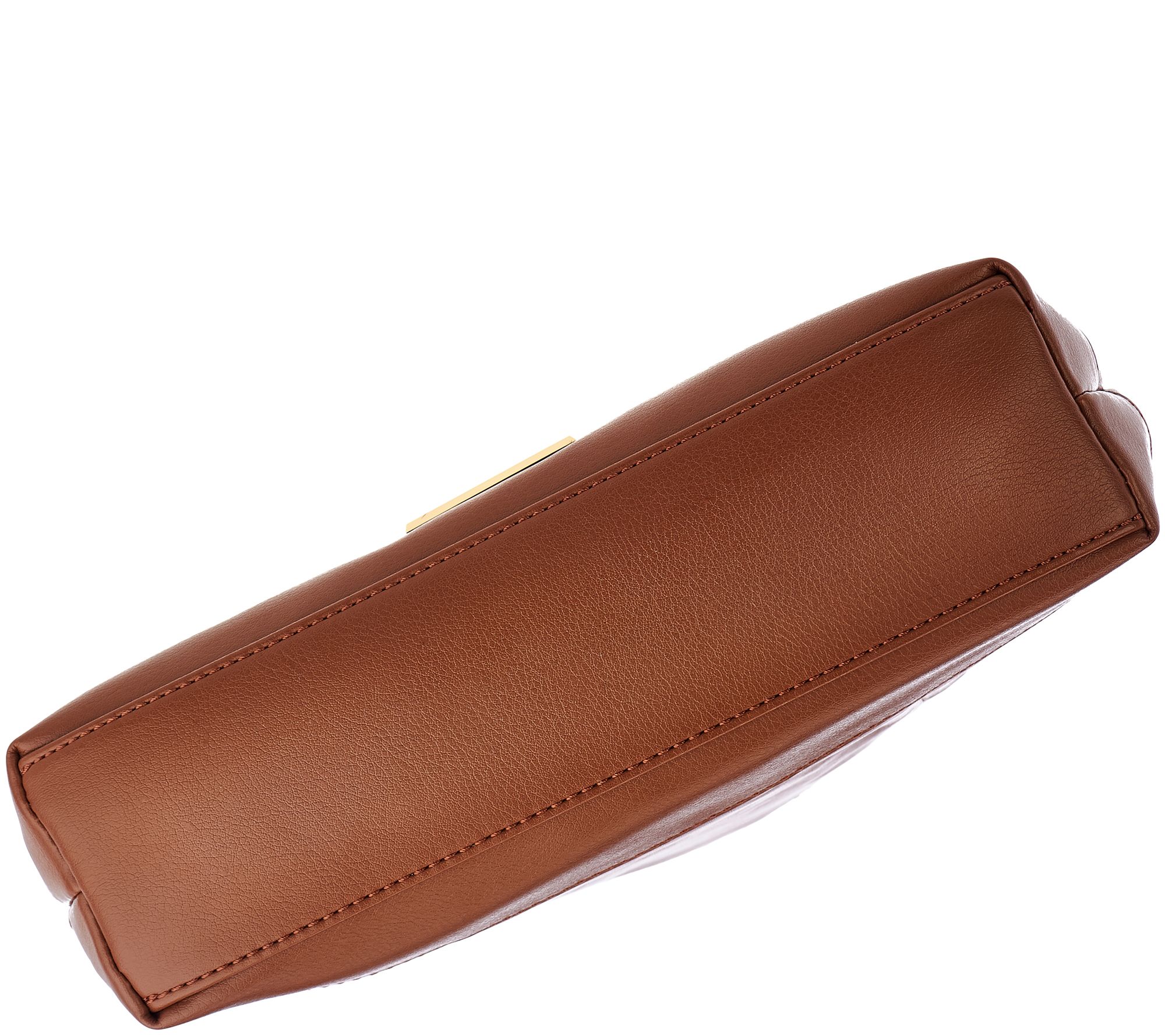 Convertible crossbody strap, glove leather body, top zip closure, front zip pocket, back slip pocket