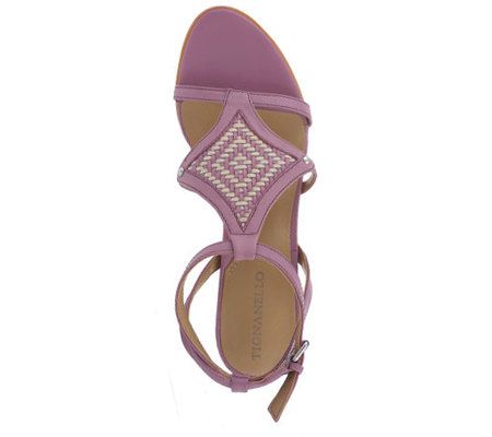Tignanello Leather Kitten Heel Sandals with Woven Detail