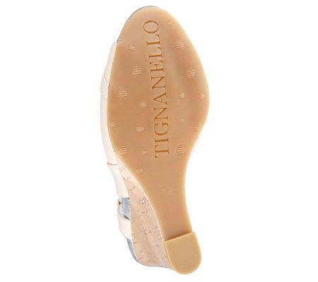 Tignanello Leather Peep Toe Slingback Wedge Sandals