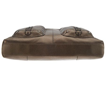 • Double handles, removable and adjustable crossbody strap, two front slip pockets with braided accents, back slip pocket, silvertone hardware, top zip closure