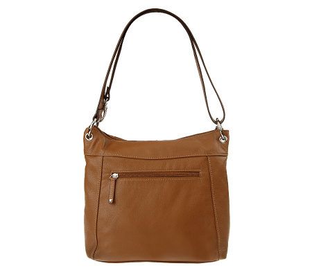 Fashion, meet function. Designer details such as rich pebbled leather, signature Tignanello hardware, and bold, season-right colors give the bag a chic, high-end look at an incredibly affordable price. Plus, check in with hair and makeup thanks to a convenient key fob which snaps open to reveal a mirror; store your daily essentials in the roomy interior; and, get organized with two front flap pockets and a zip pocket in the back.