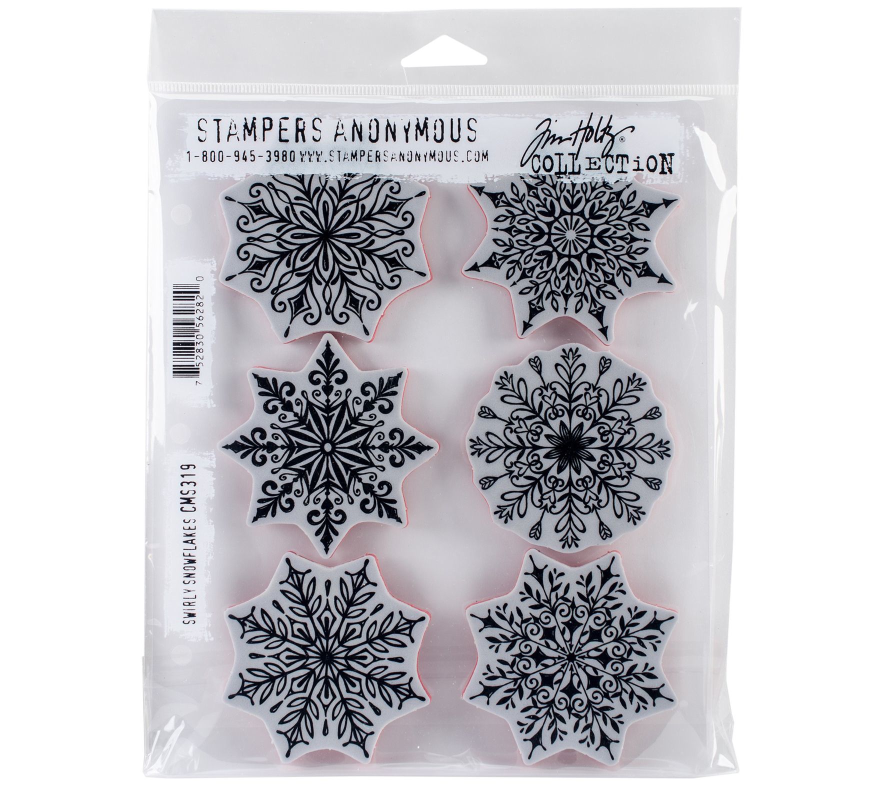 Let it snow all around your works of art with these Swirly Snowflakes cling stamps. From Tim Holtz for Stampers Anonymous.