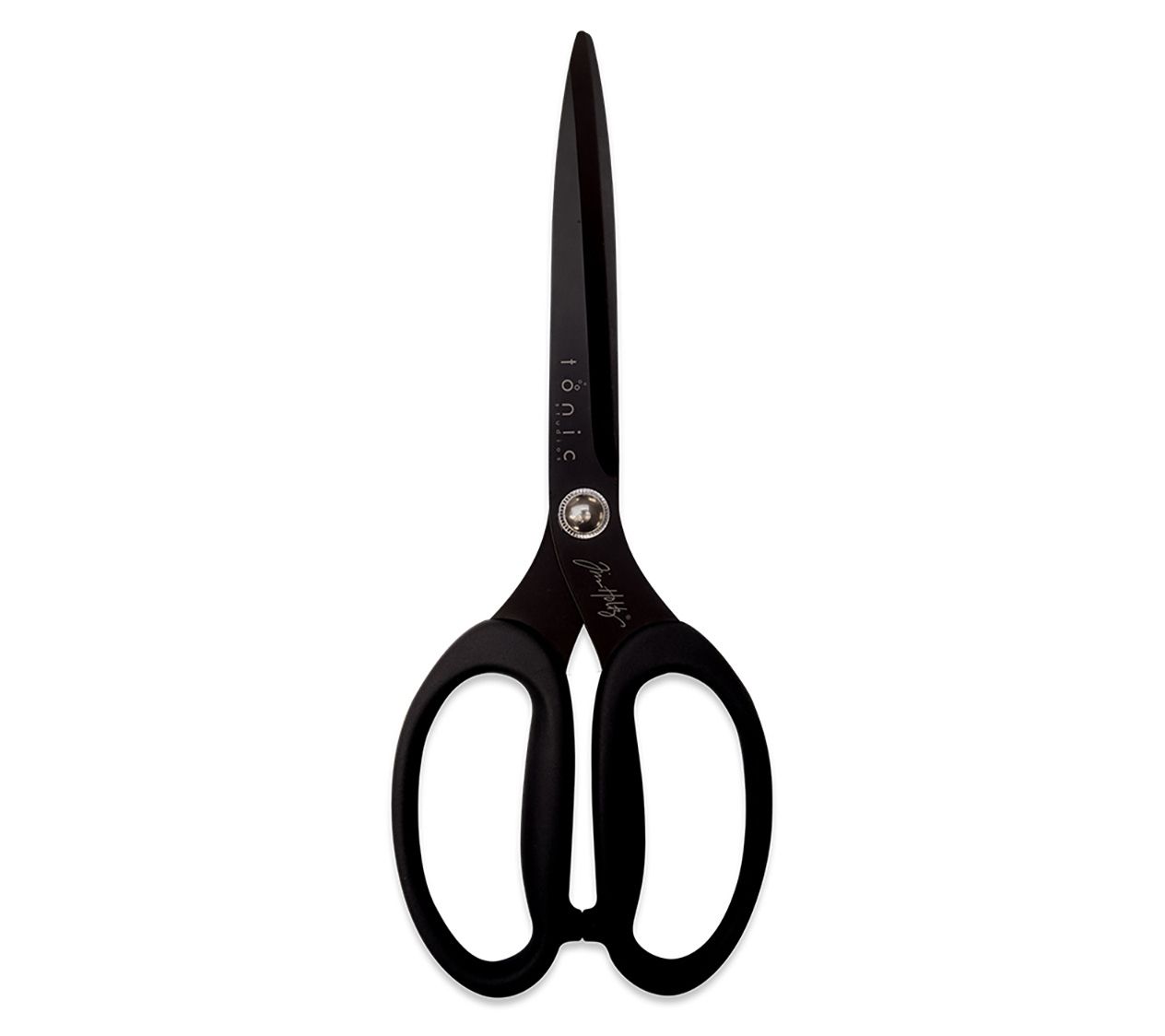 Enjoy excellent cutting on all types of craft materials with these shears crafted with high-durability titanium-coated blades and a micro-serrated edge for controlling cutting. From Tim Holtz.