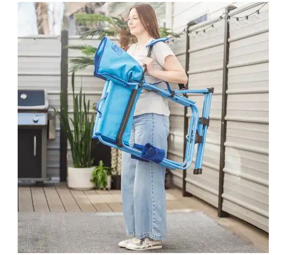 Spectators will gawk at the gentle rocking bounce of its powder-coated steel frame and specialized spring system, paired with a perfectly tensioned seat, for comfortable motion that's never jarring, jerky, or launch-like. (Let 'em try it out for themselves -- this chair supports up to 300 lbs!) They'll be amazed at how you use just this one chair on beach sand, park grass, playground mulch, and backyard patio pavers with equal ease (that should free up some storage space in the garage). And they'll for sure ask you hold their beverage and phone -- because your chair has a sturdy place for both!