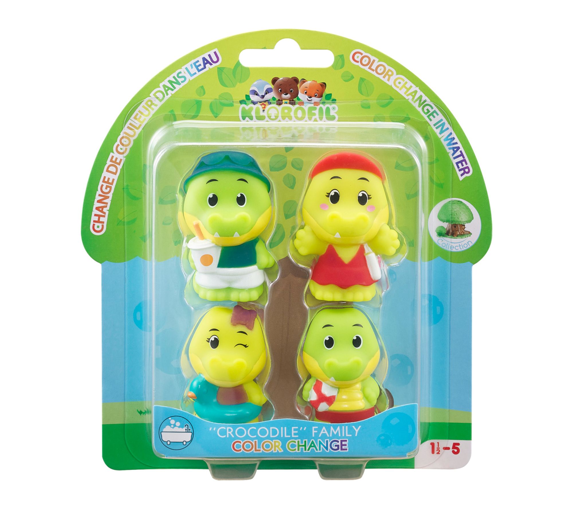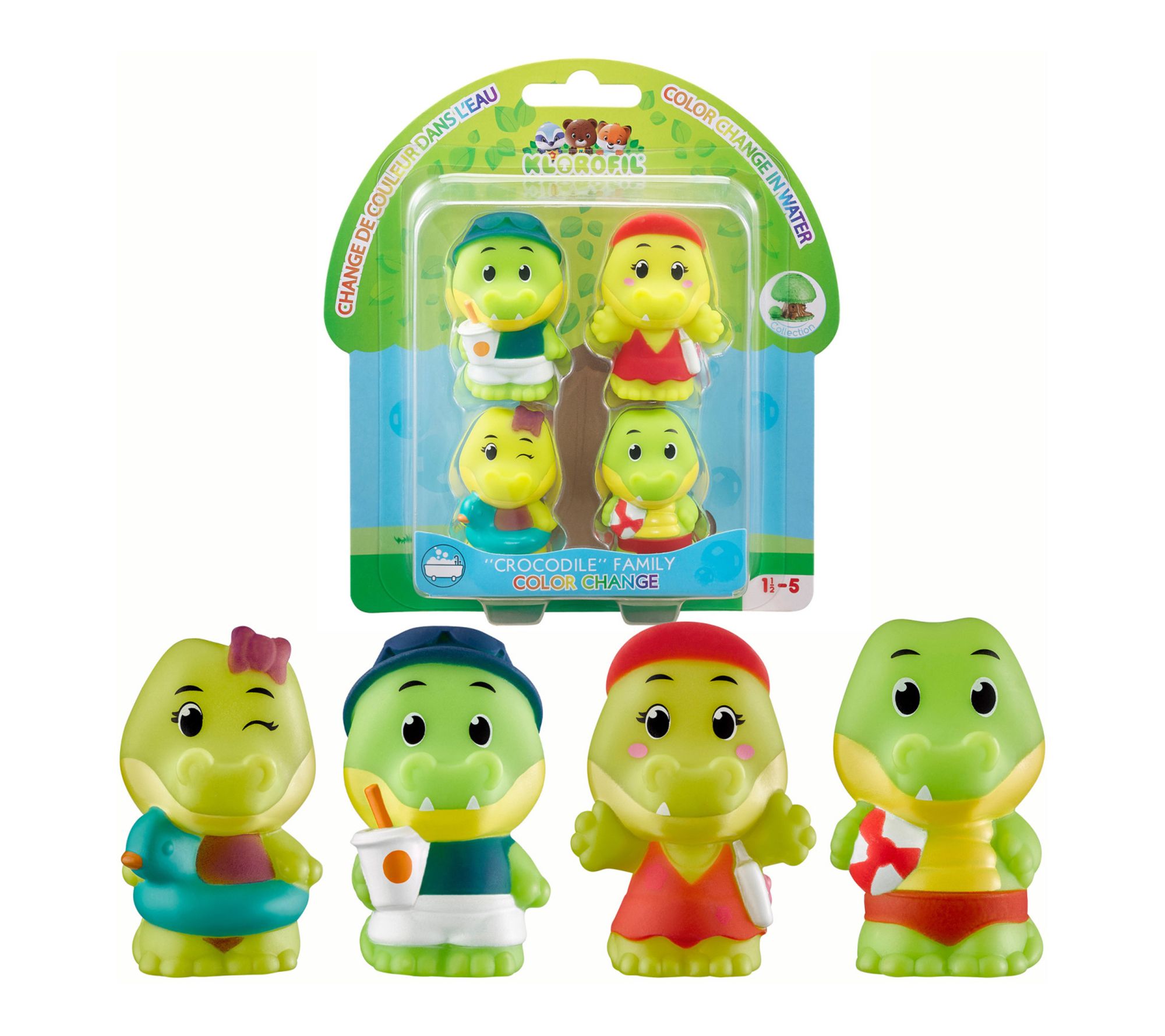 Introducing the Magic Croco family! This cute family consists of four crocodile figures. And it's not just crocodiles, but nothing less than magical crocodiles that change their outfits and colors when they are immersed in warm water. Experience father Aldo, mother Odile, and children Wally and Alie, and watch them transform when you take them in the shower or tub. Kids will enjoy many hours of imaginative play. From Timber Tots.
