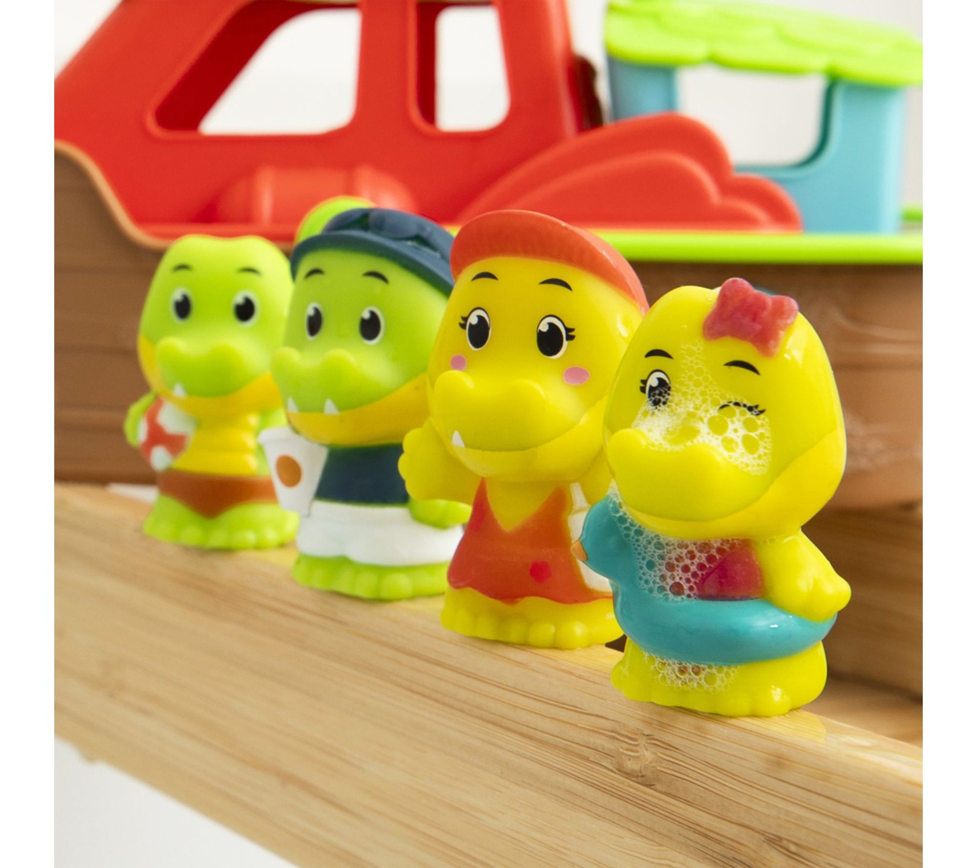 • Includes four crocodile figurines: daddy Aldo, mommy Odile, and children Wally and Alie