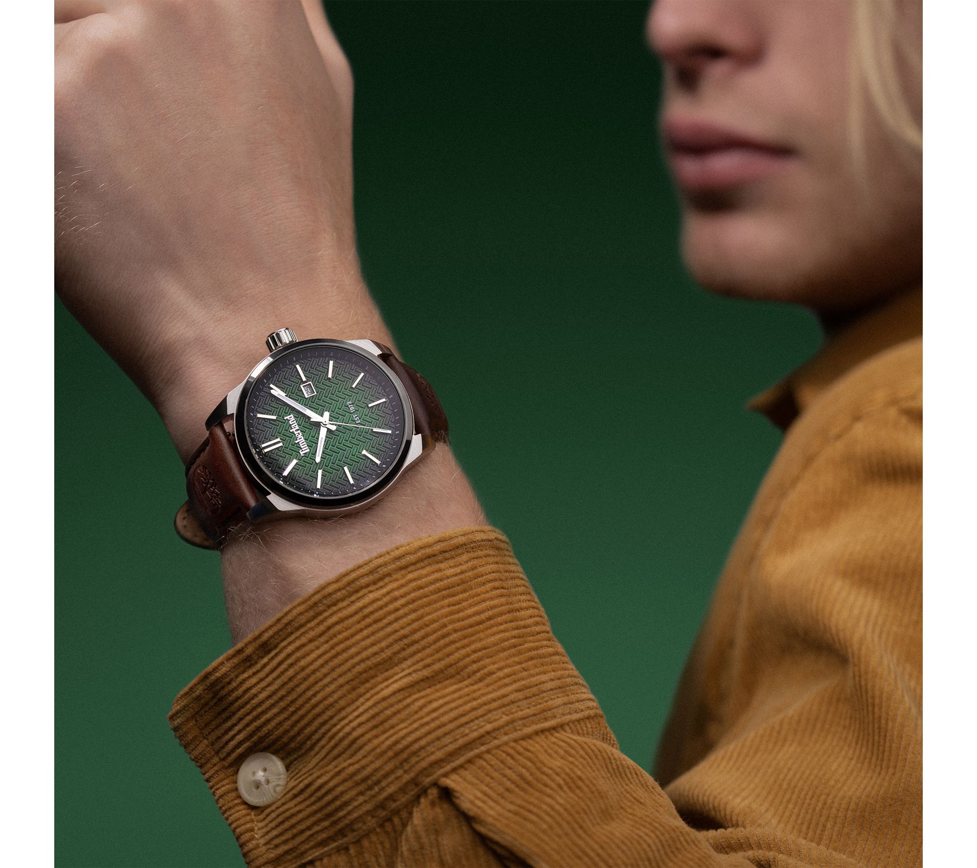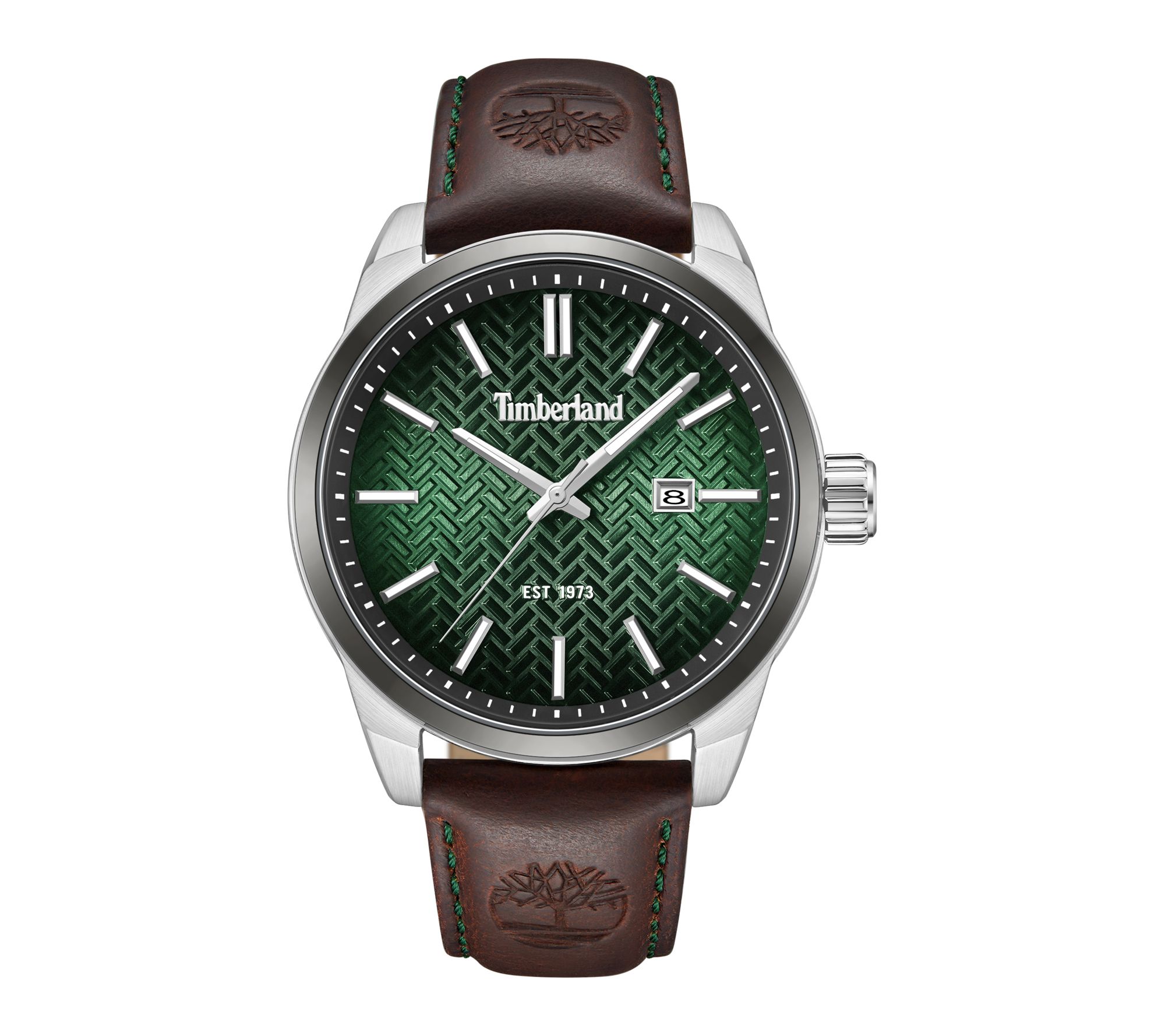 Adventure-ready style meets everyday versatility with this men's watch, designed to keep up with your busy schedule while adding a touch of confident refinement. The casual yet polished look, highlighted by a green textured dial and brown leather strap, makes it easy to transition from workdays to weekends without missing a beat. From Timberland.