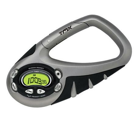 Funky time. This hip clip watch has an indiglo nightlight, with night-mode option and all-day indiglo display. The shock-resistant watch is equipped with Mystery Answer and Screen Saver features; 24-hour chronograph with split time; daily alarm; 24-hour countdown timer; 12/24 hour time; and month/date/day display. The double injection-molded case is metallic gray and black resin with a black matte ring. Silvertone matte push buttons detail the face and make for easy switching from feature to feature. A spring-loaded clip mechanism secures the watch onto your belt buckle or backpack strap. Water resistant to 50M. Includes 3-year battery. Measures 4"L x 2"W. 1-year LMW. Gray. Made in Philippines.