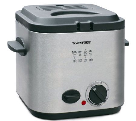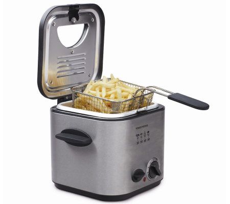 This handy deep fryer has a compact design, ensuring it will fit in with any kitchen. The easy-to-use deep fryer features a locking lid with release button and viewing window, a permanent anti-odor filter, stay-cool handles, and non-slip feet. From Toastess.