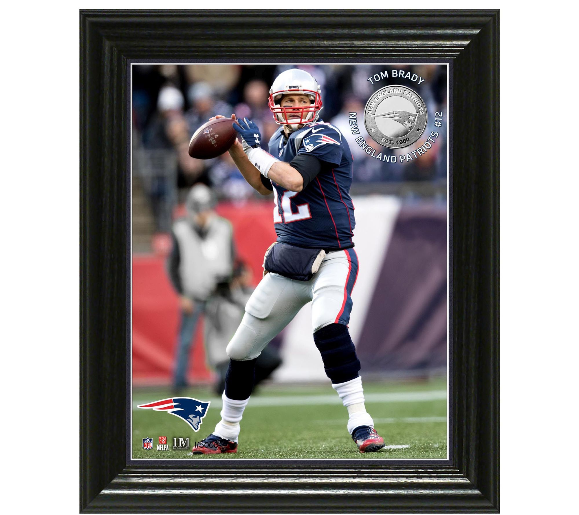 Add to your memorabilia collection with this Elite Series framed photo--complete with a minted New England Patriots commemorative team coin right on the custom action photo of star quarterback Tom Brady.