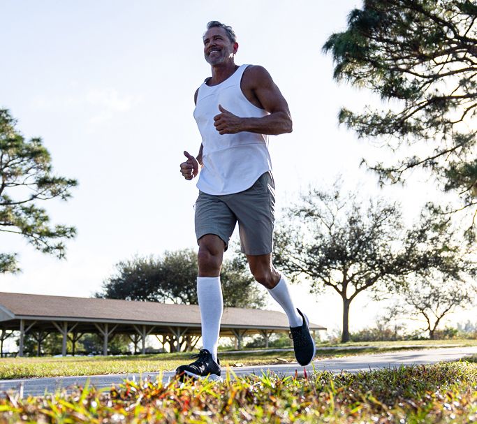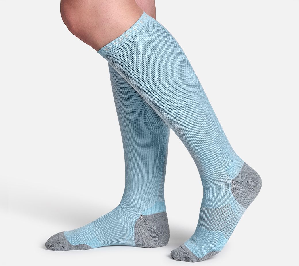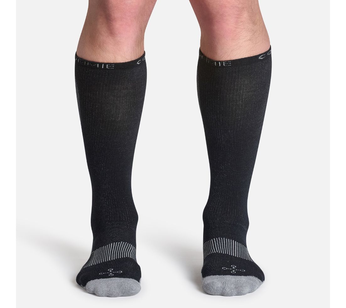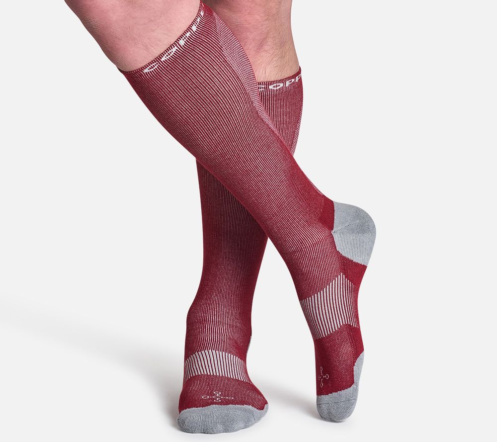 Compression in the arch, heel, and through the calf: compression helps provide relief from aches, pains, and muscle soreness; compression assists with recovery time of muscles