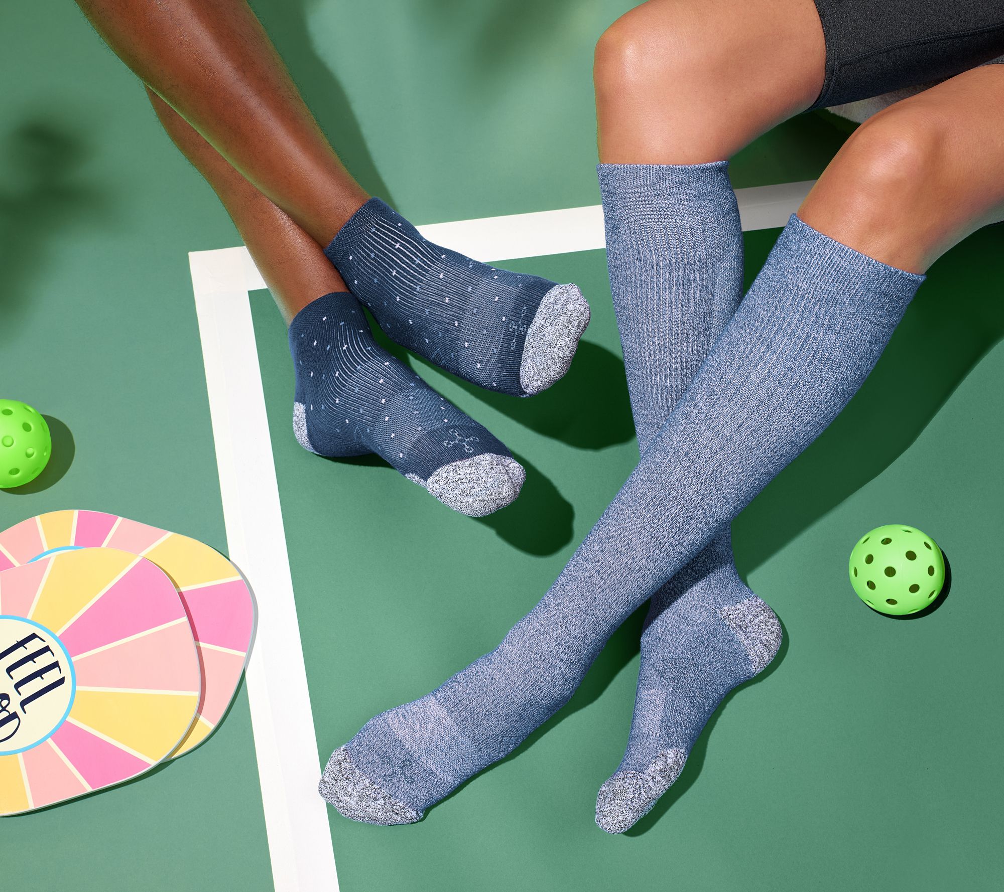 Take care of tired tootsies. With a comforting combination of brand technologies and feel-good features, these graduated compression socks help provide temporary relief from minor muscle aches, pains, and muscle soreness (great for post-pickleball, walking club jaunts, or a day with the grands). What's more, super-cushiony AIRFlex XS yarns have modified cross sections that help manage moisture and offer abrasion-resistance which may help prevent uncomfortable rubbing that could lead to blisters or irritation (theme park, here you come!).