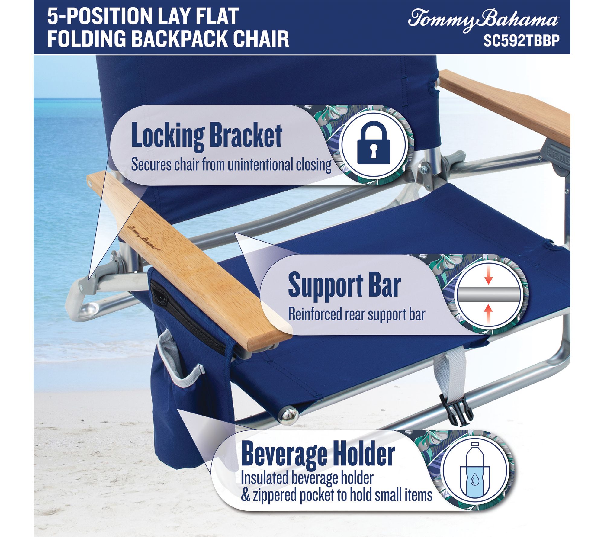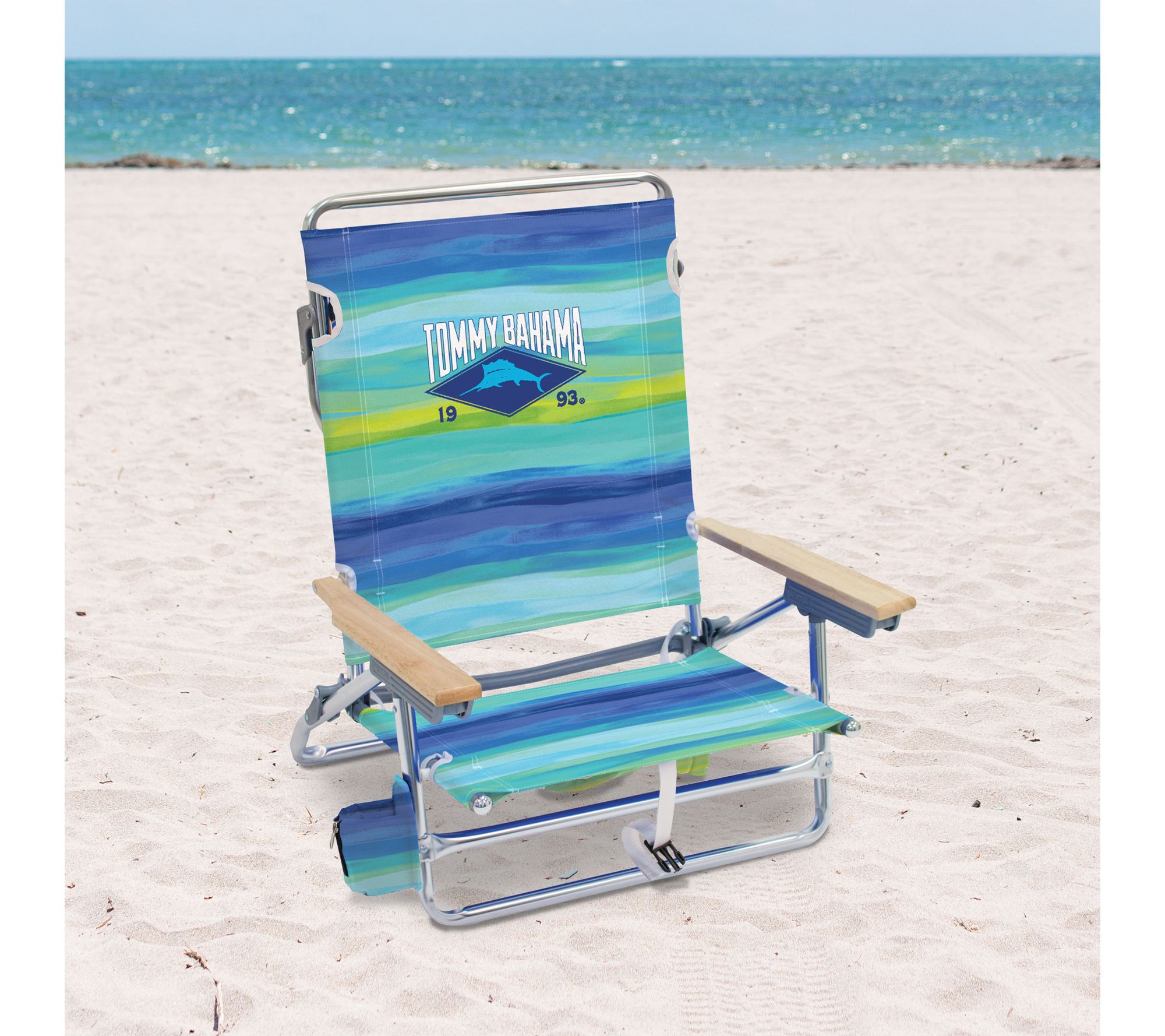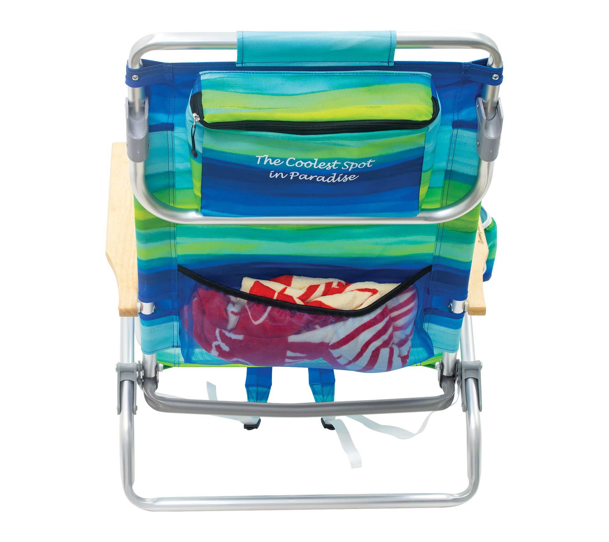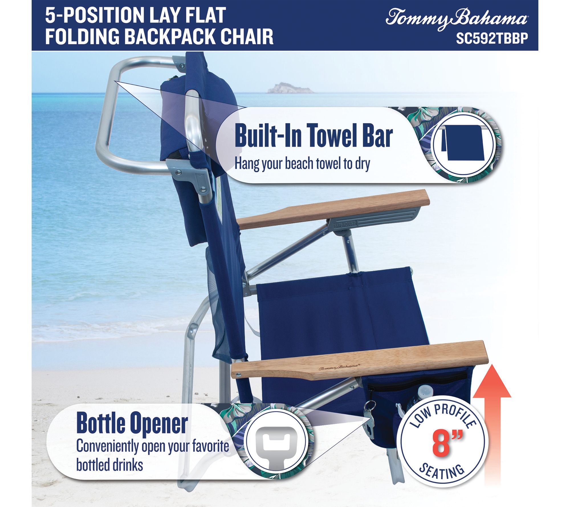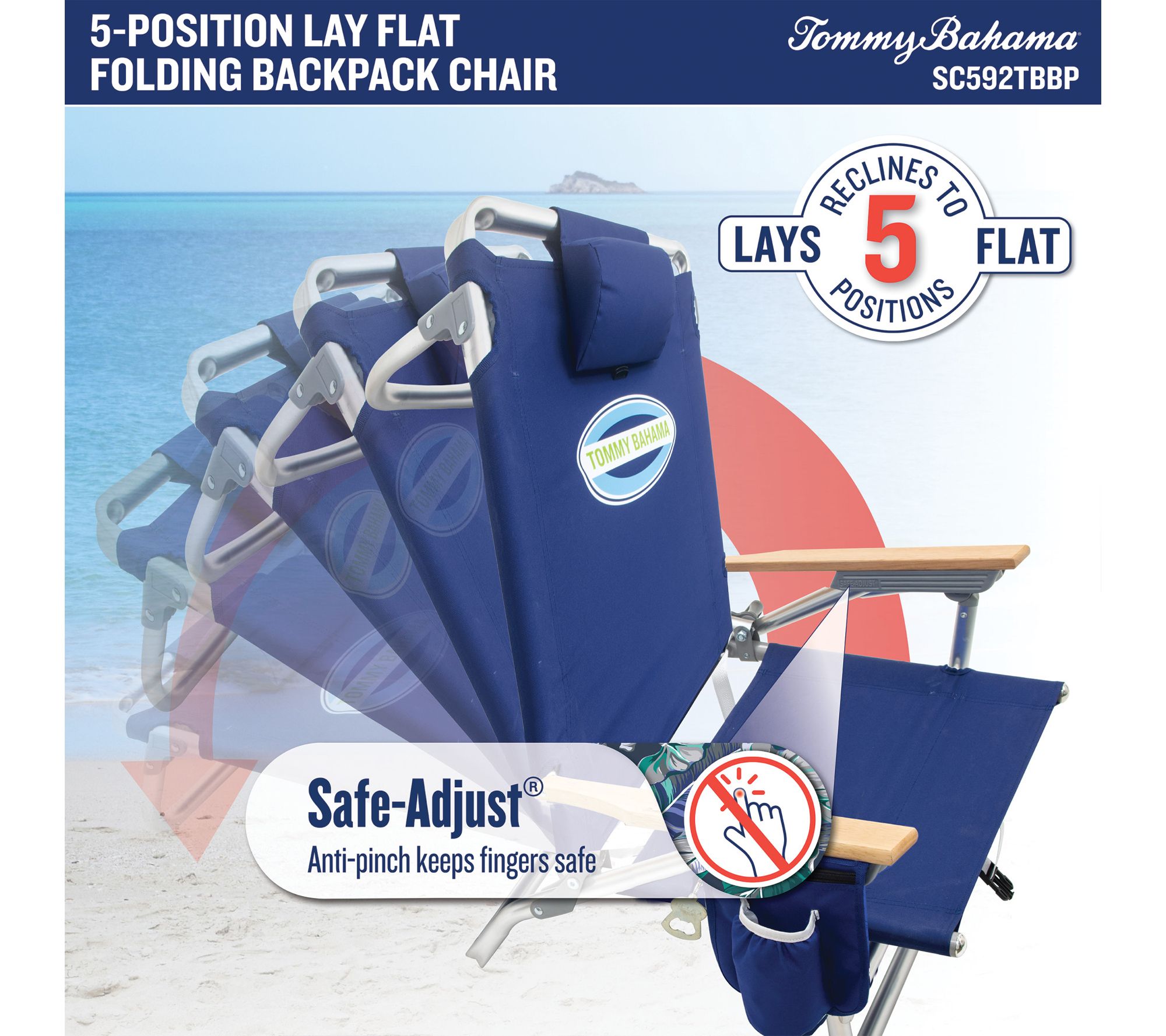 Stretch out and soak up the sun by the shore or poolside with this five-position lay flat backpack beach chair. Crafted with quick-dry fabric and a lightweight aluminum frame, it's easy to carry and even easier to relax in -- making your next beach day or picnic outing a breeze. From Tommy Bahama.