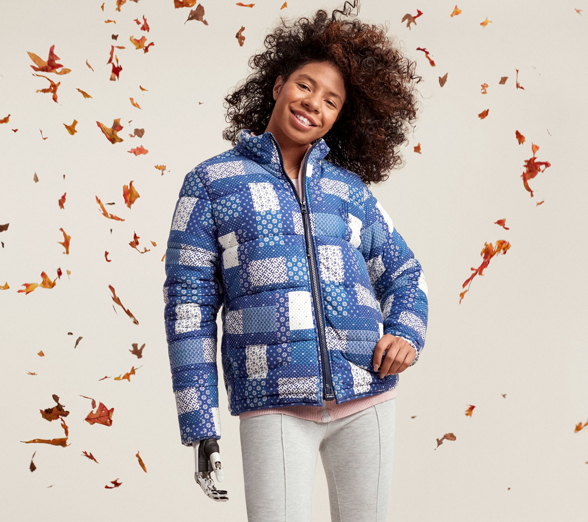 Brave the elements in this stylish puffer that's sure to stand out thanks to its patchwork-inspired print that's anything but ordinary. And with a magnetic zipper, it allows for ease of dressing. From Tommy Hilfiger.