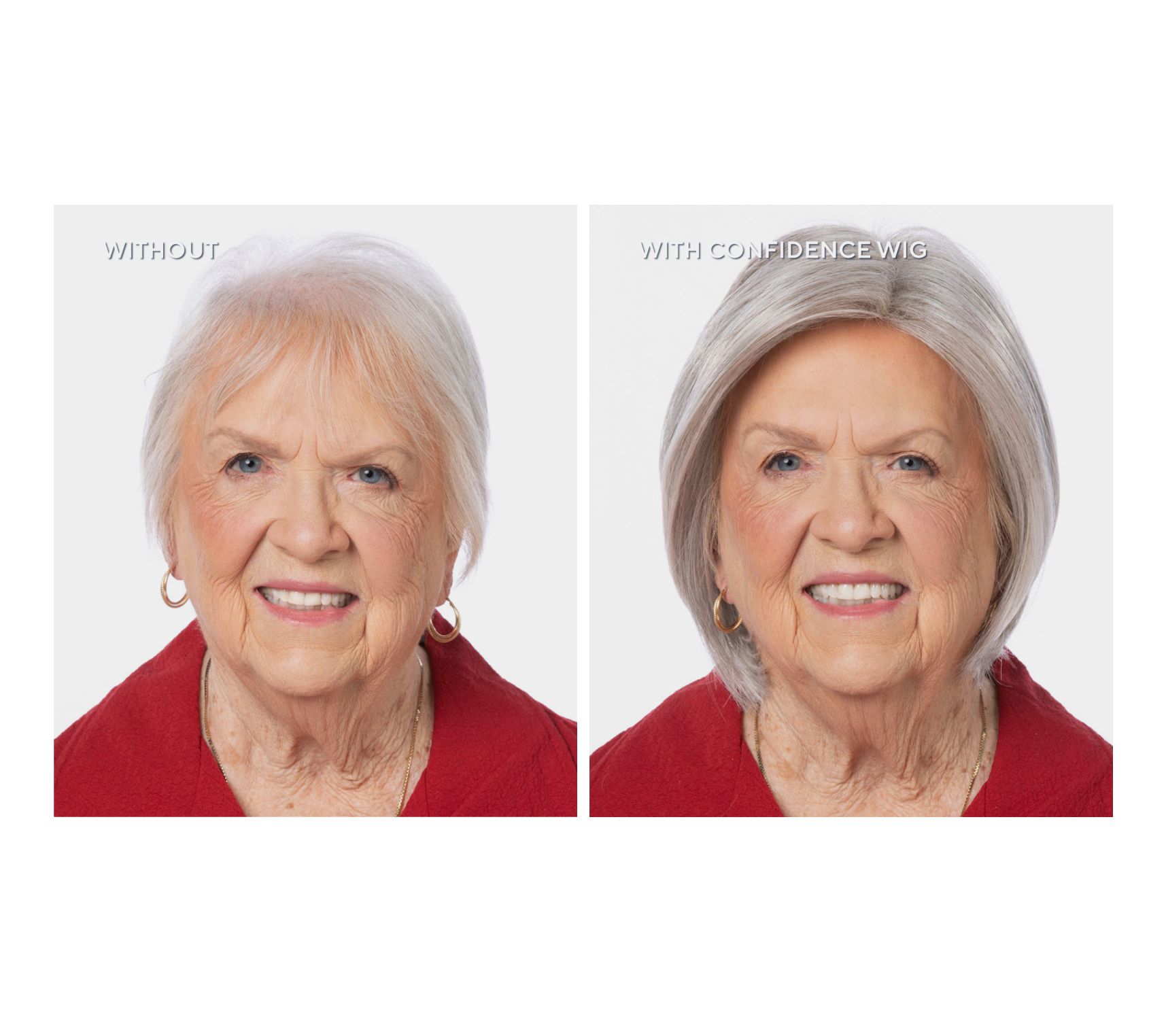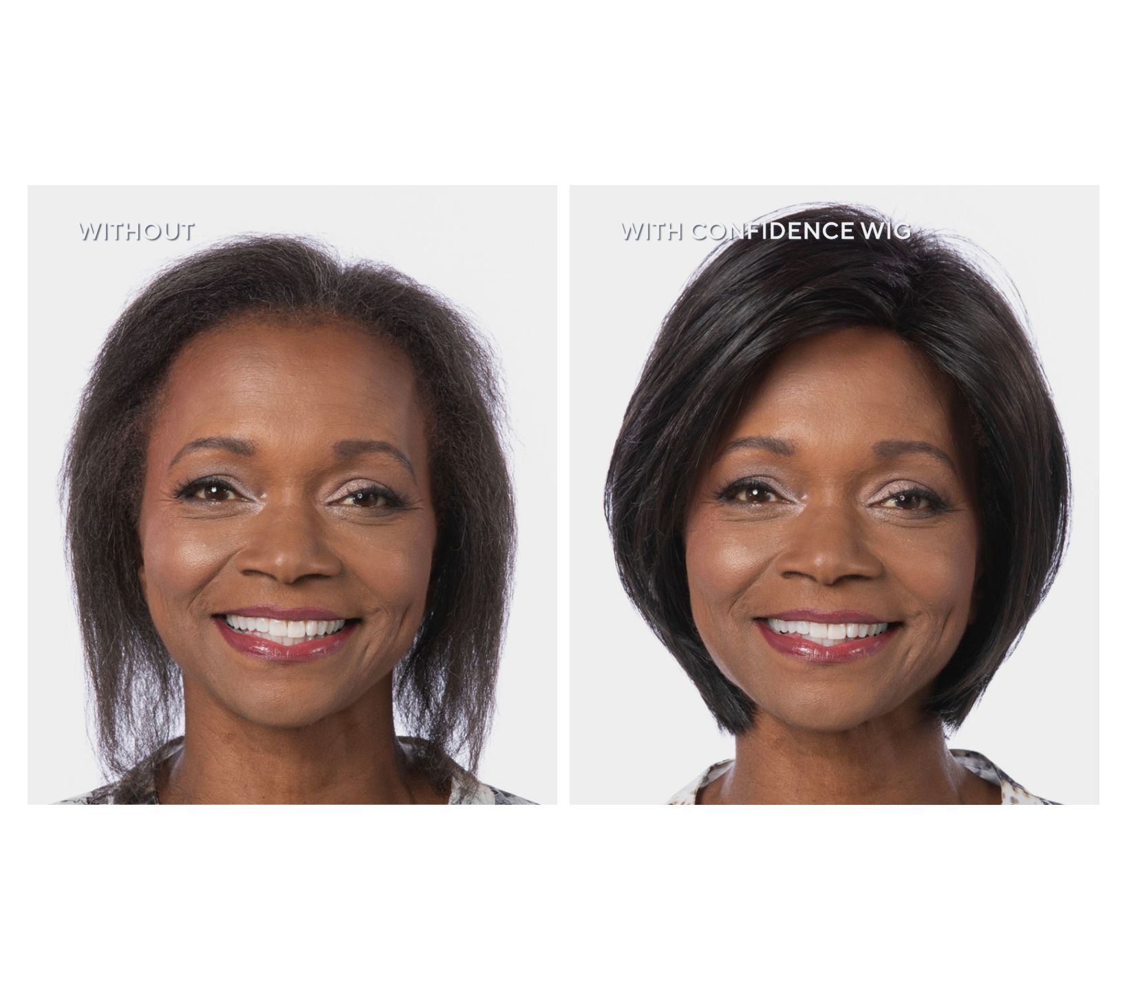 This lovely Confidence wig is beautifully designed with tapered layering to frame your face. The wide velvet band at the front and adjustable sizing tabs provide a comfortable fit. From Toni Brattin.