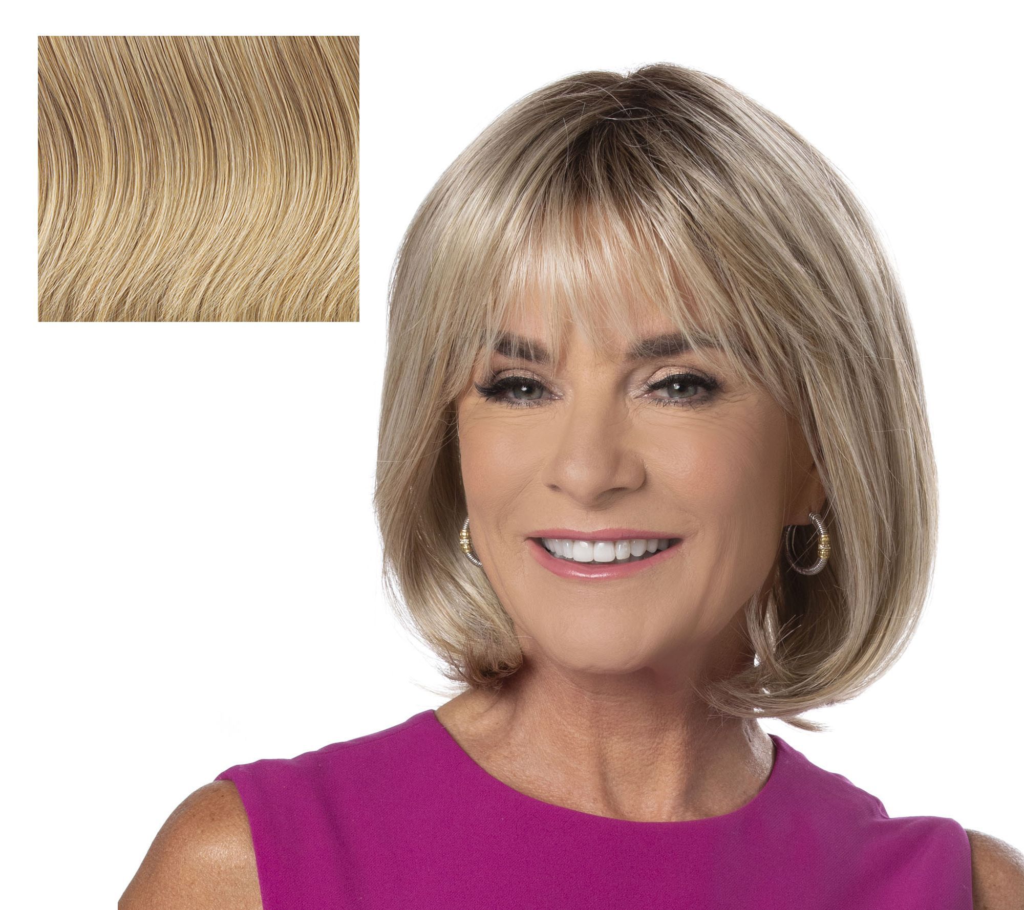 Smooth and straight layering with loose bangs, the Toni Brattin Easy Elegance wig features a softly sculpted face-framing bob that you can wear tucked behind the ears or let it flawlessly fall to the chin.