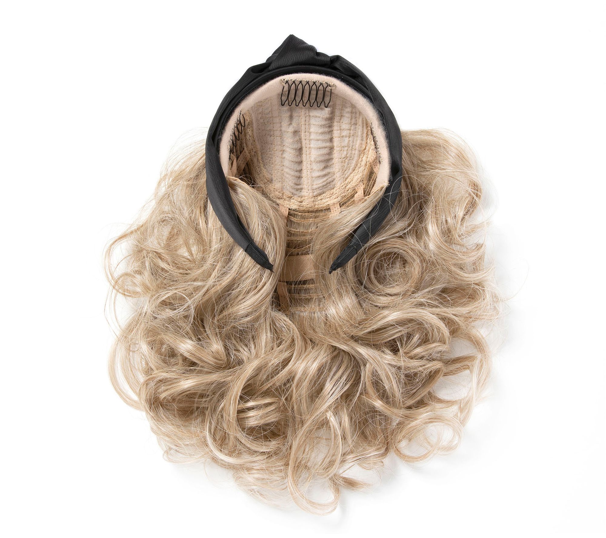 How do I use it: Style the front of your hair as desired. Slide the headband straight onto your head as you would a regular headband. If the fall is longer than your hair just let it fall past your hair and blend. If the fall is shorter, simply pin up your own hair at the nape or leave it down for a layered look.