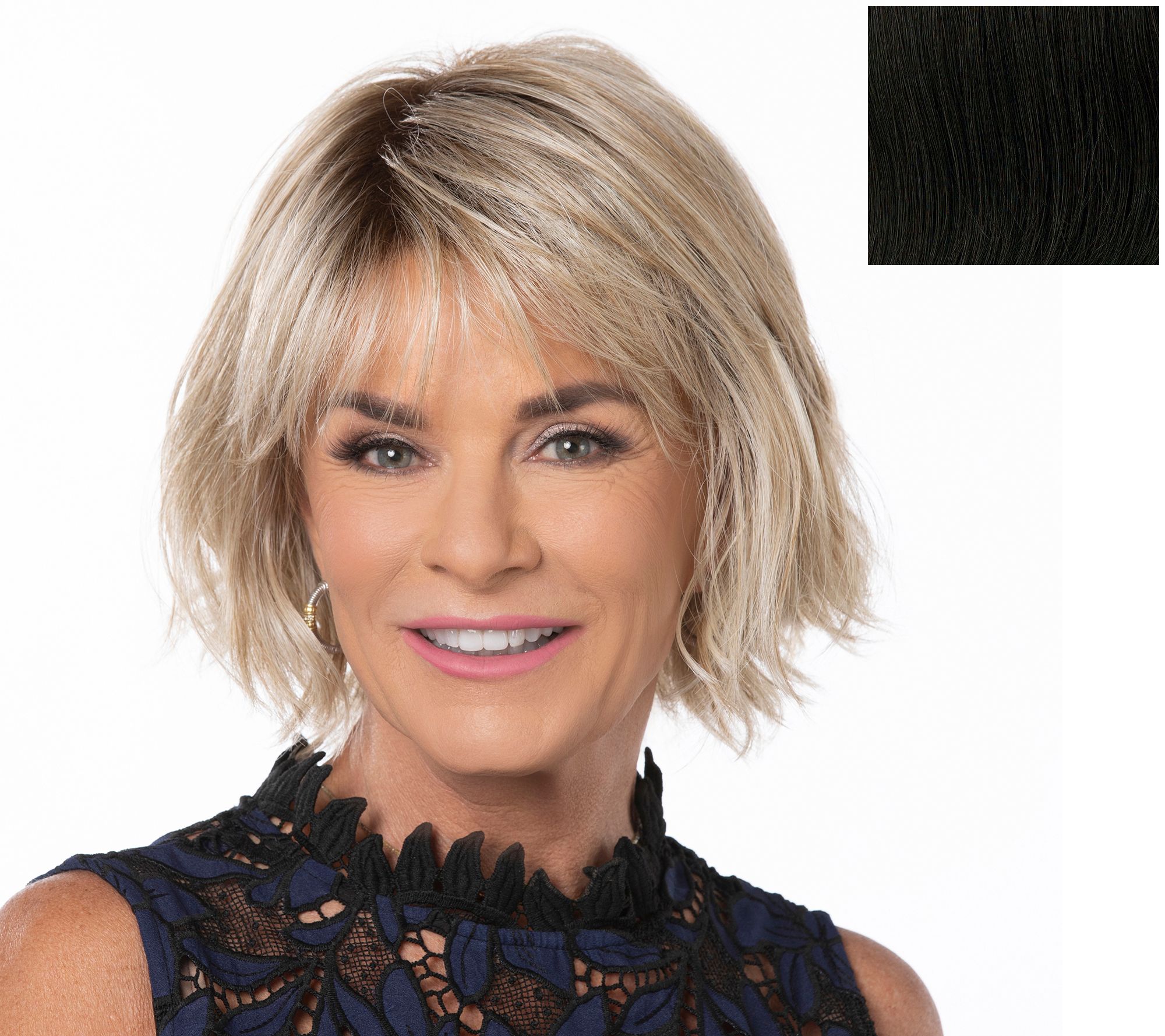 Sassy yet sophisticated, this textured wig features unstructured waves and a soft razor-cut bang that shapes the face and highlights the eyes. No need to call the salon spend hours fussing to create this confident look -- it's a perfect hair day, every day!