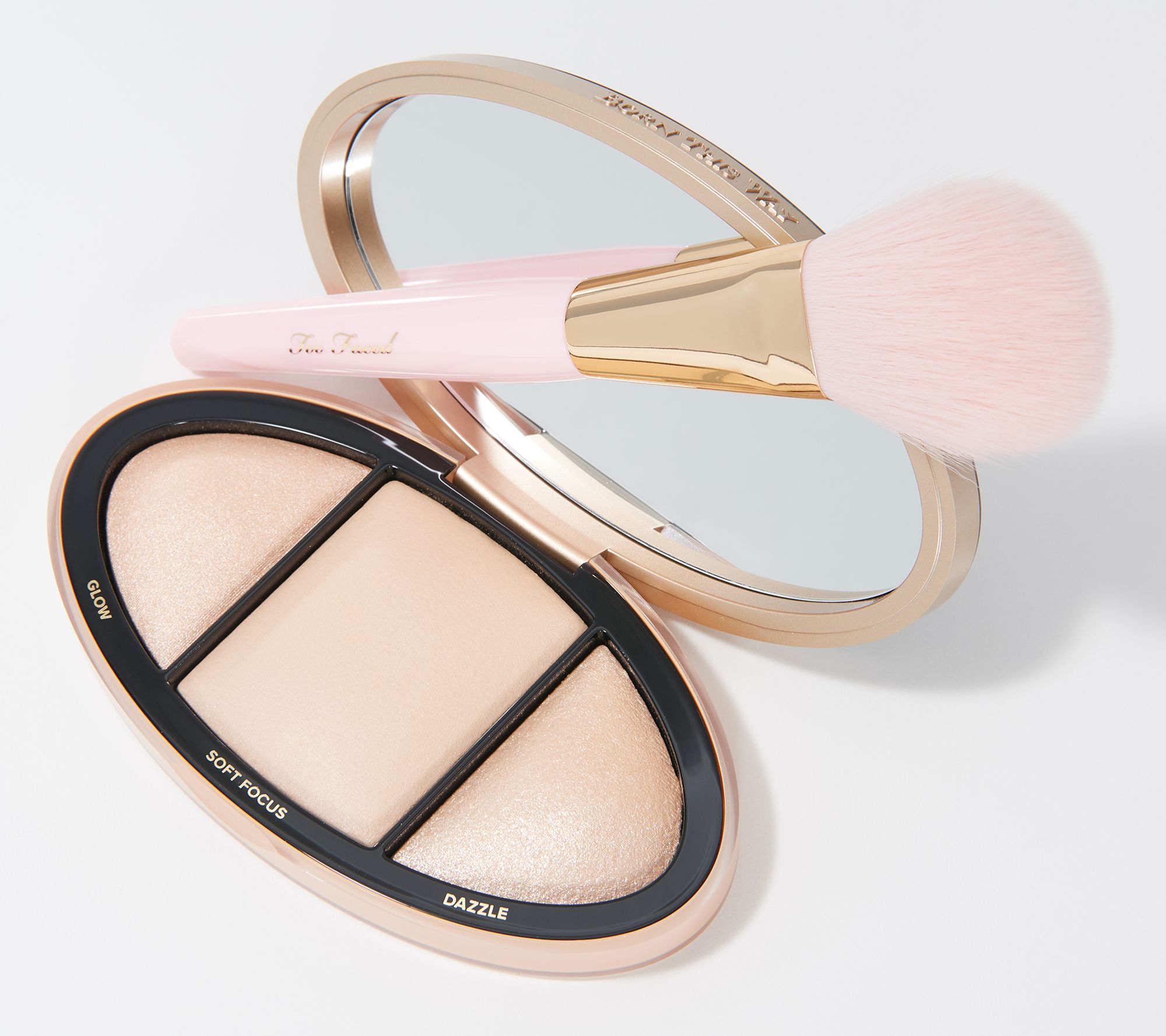 Turn up the light and add the appearance of dimension, lift, and luminosity with this complexion-enhancing highlighting palette from Too Faced, created to bring out the look of inner radiance in every skin tone. This baked trio diffuses and refracts light for a perfectly-lit complexion anywhere you go.