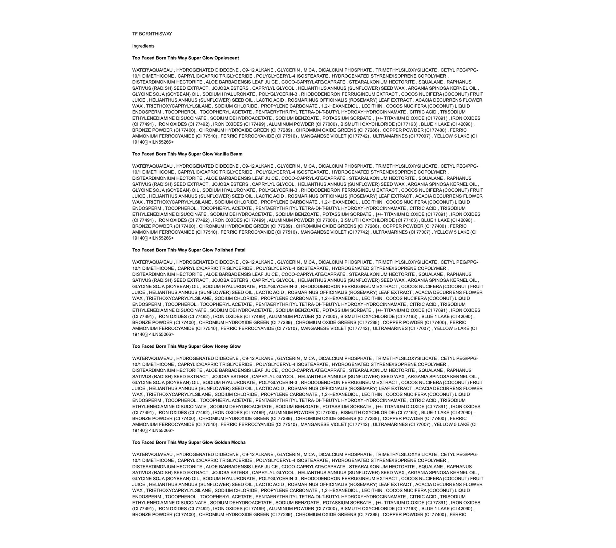 Born This Way Super Glow from Too Faced is a fusion of skincare and illumination for the look of perfect lighting! Wear alone or with makeup to smooth and temporarily improve your skin's appearance. Worn alone or with makeup, this multi-use glow enhancer smooths and illuminates skin's appearance for the look of perfect lighting.