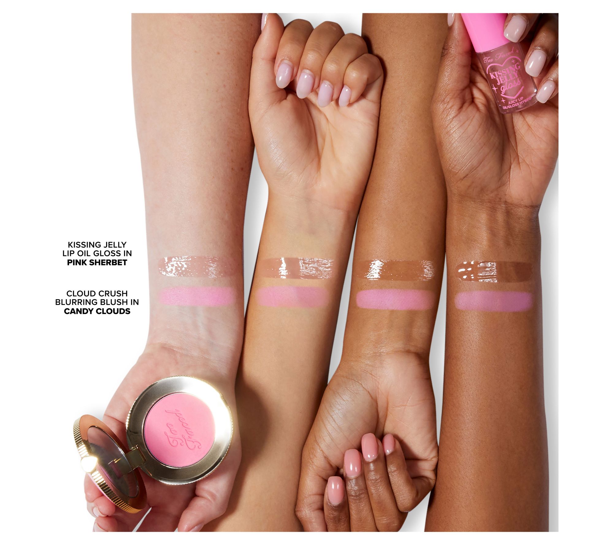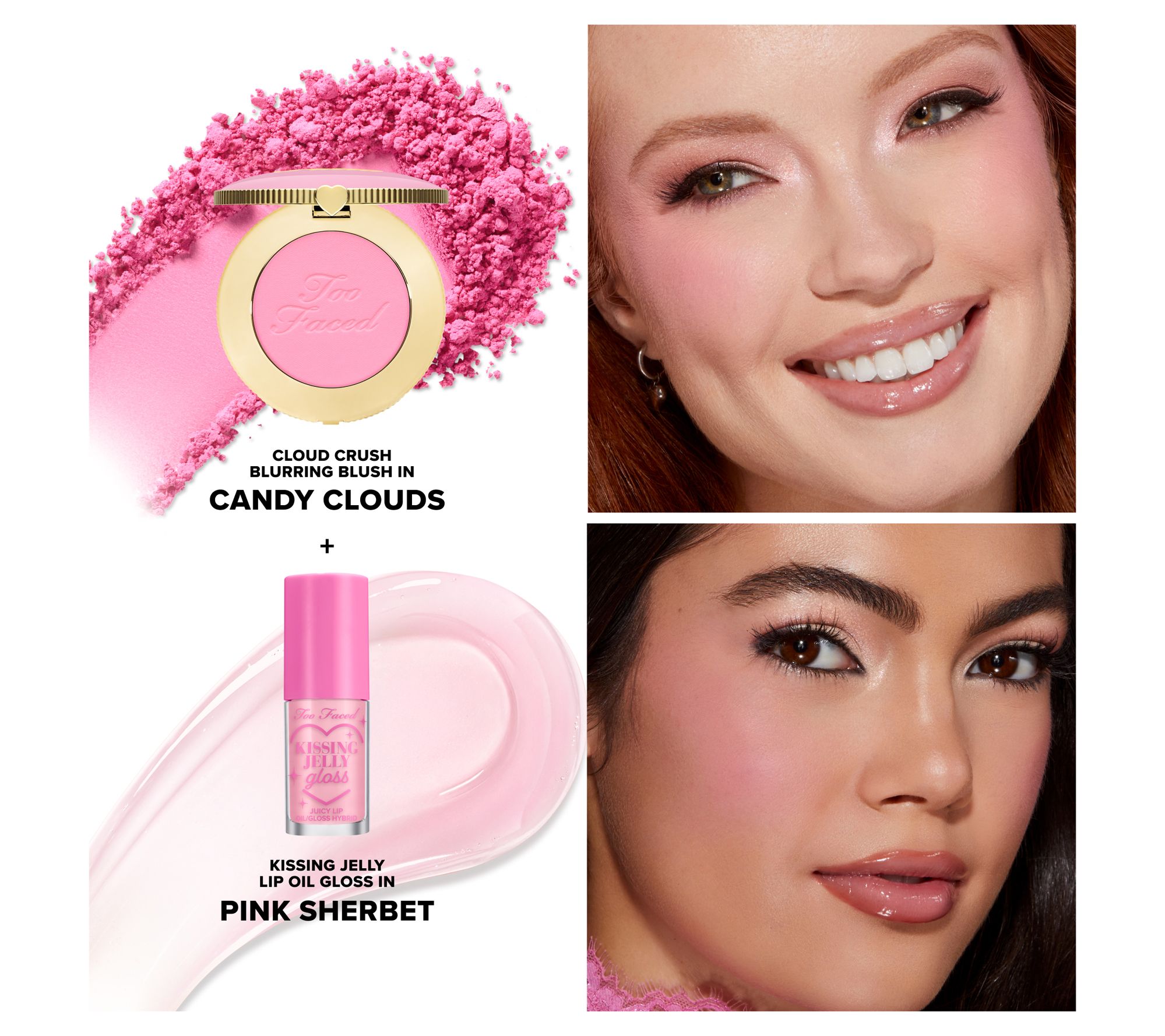 This is the set you've been dreaming about! Perfect for gifting and getting, the must-have set includes products you love, in shades you can't resist. You get Cloud Crush Blurring Blush in the most popular Too Faced shade paired with a special-edition shade of Kissing Jelly Lip Oil Gloss.