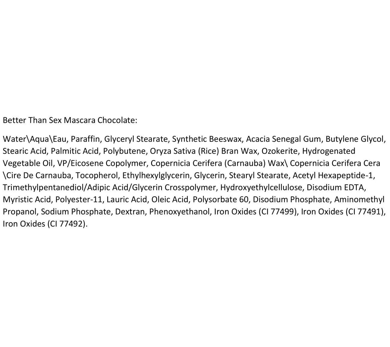Better Than Sex Mascara in Chocolate is a deep, rich chocolate brown shade. Film-forming polymers lock curl in place while peptides condition lashes.