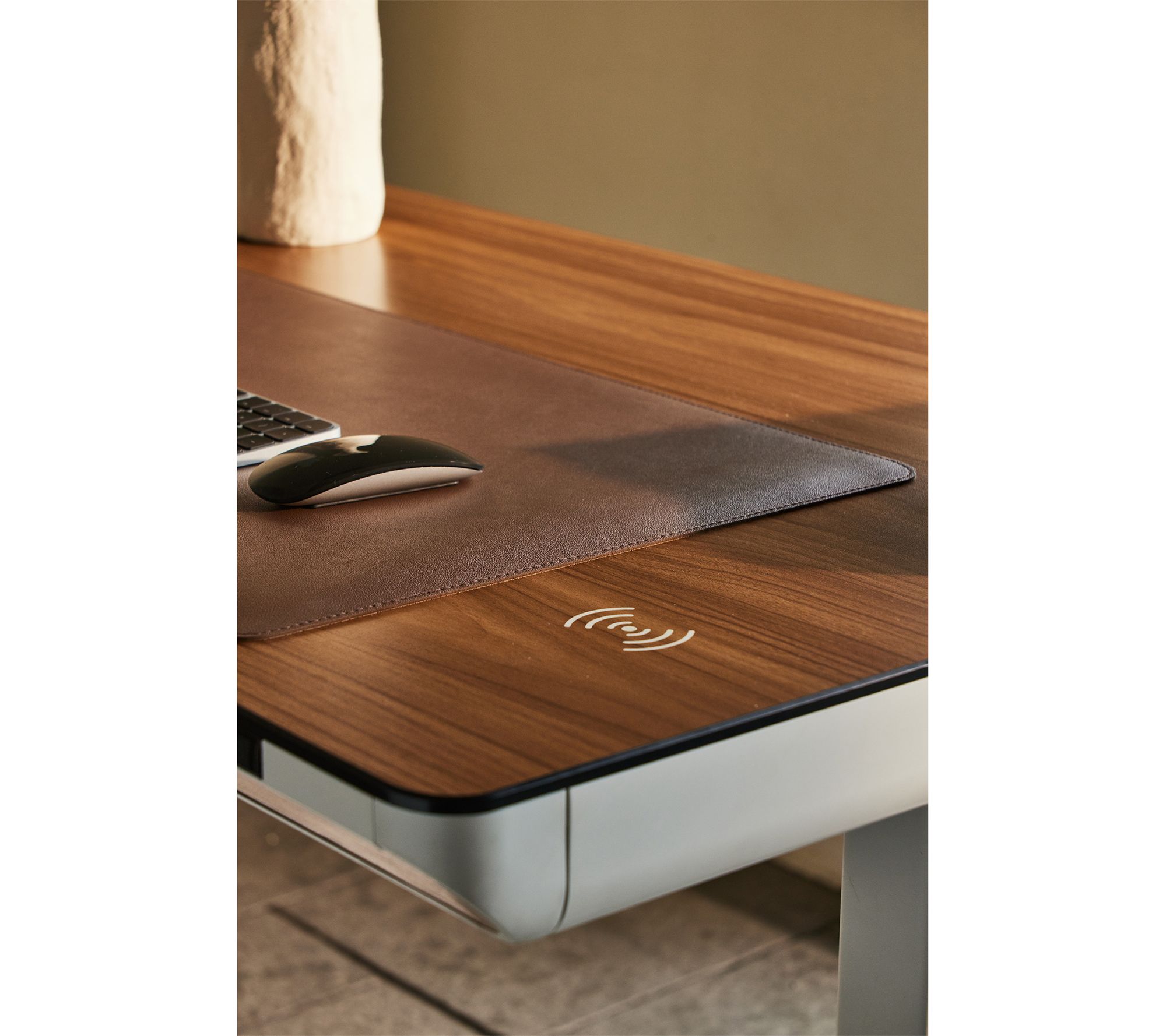 Stay active and focused with the RIPPLE electric standing desk, designed to keep you moving gently as you work. Its soft, rounded edges and seamless storage deliver a workspace that's as stylish as it is practical, while the hidden cables and quiet lift make transitions from sitting to standing almost effortless. Refresh your routine with flexible comfort every day. From TopJob.