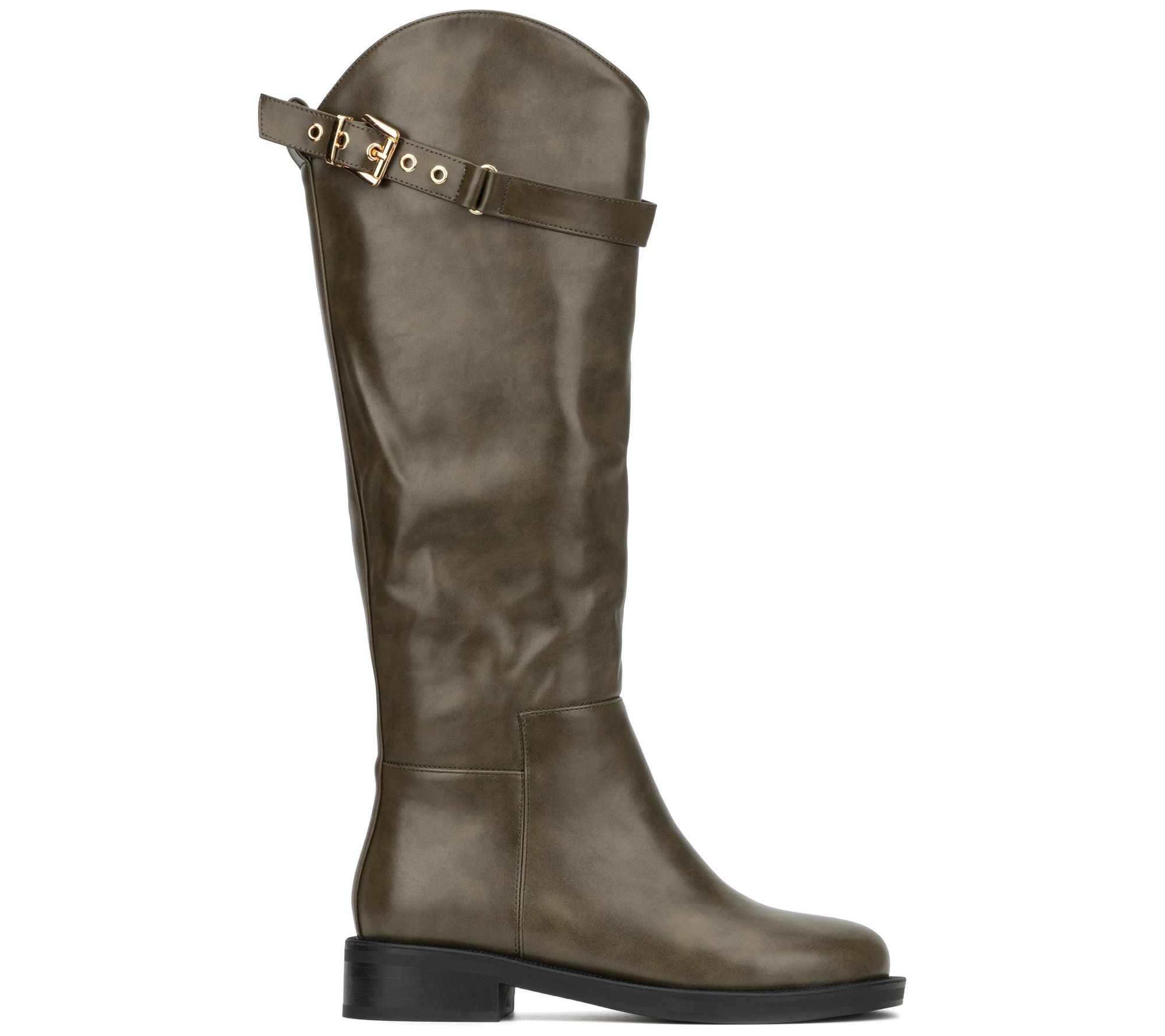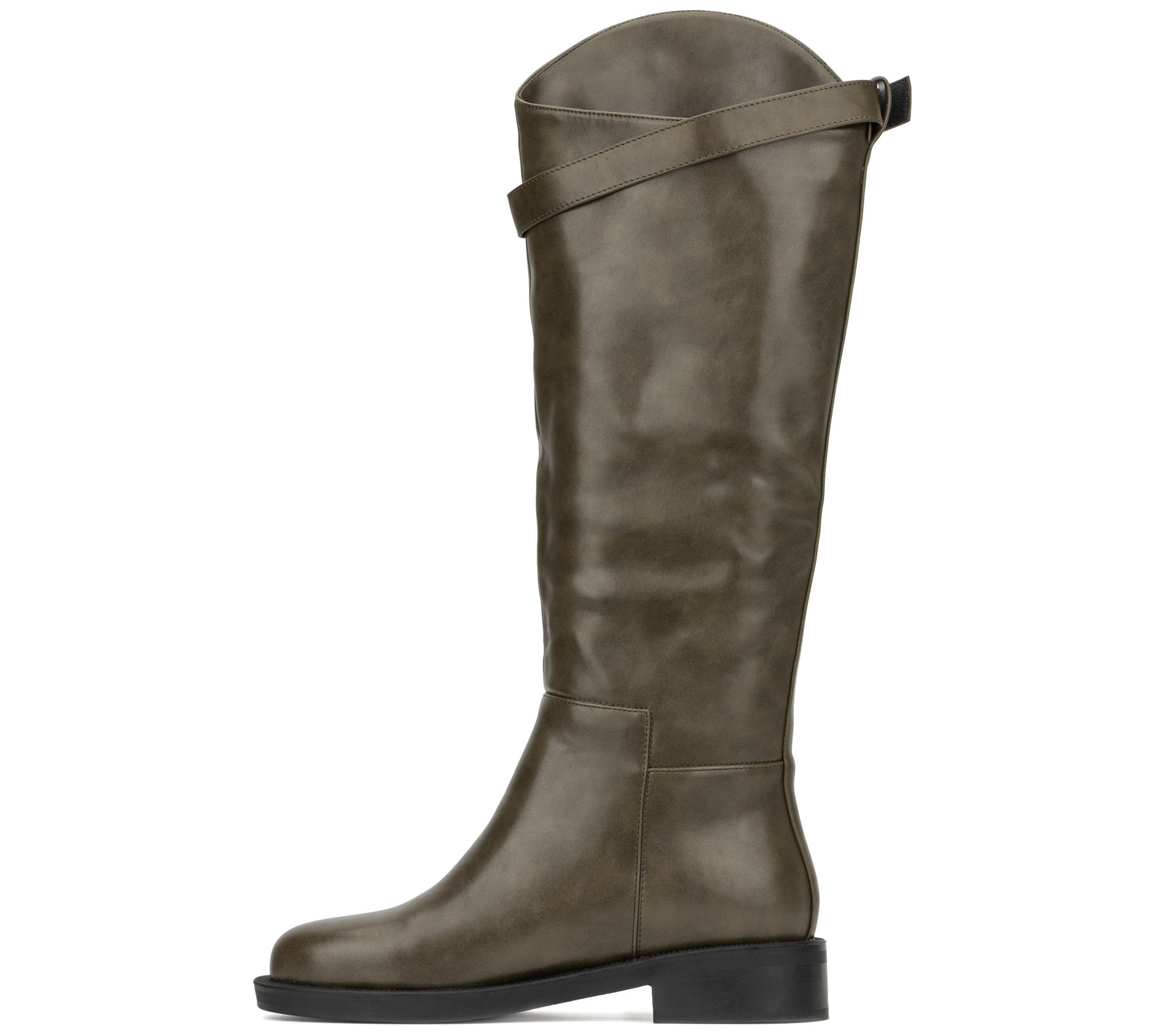 Bring sleek sophistication to your steps with these tall knee-high boots that showcase belted accents and convenient side-zip closures. From Torgeis.