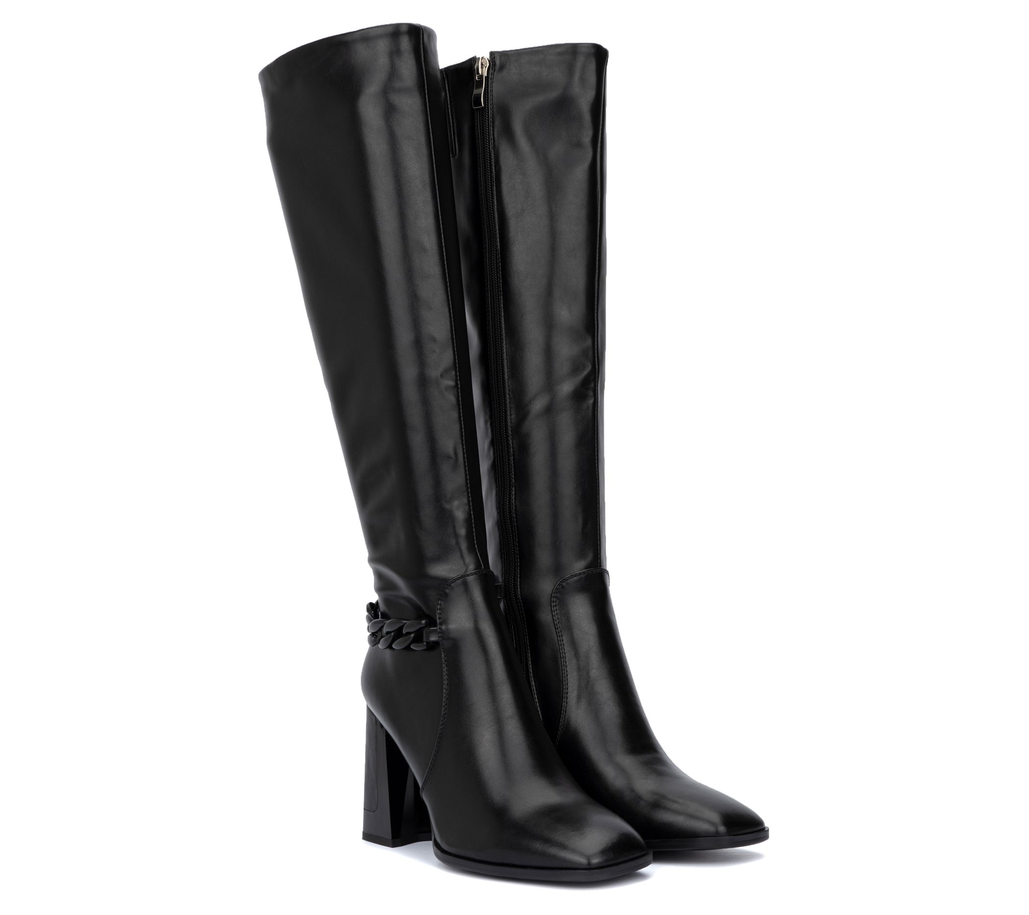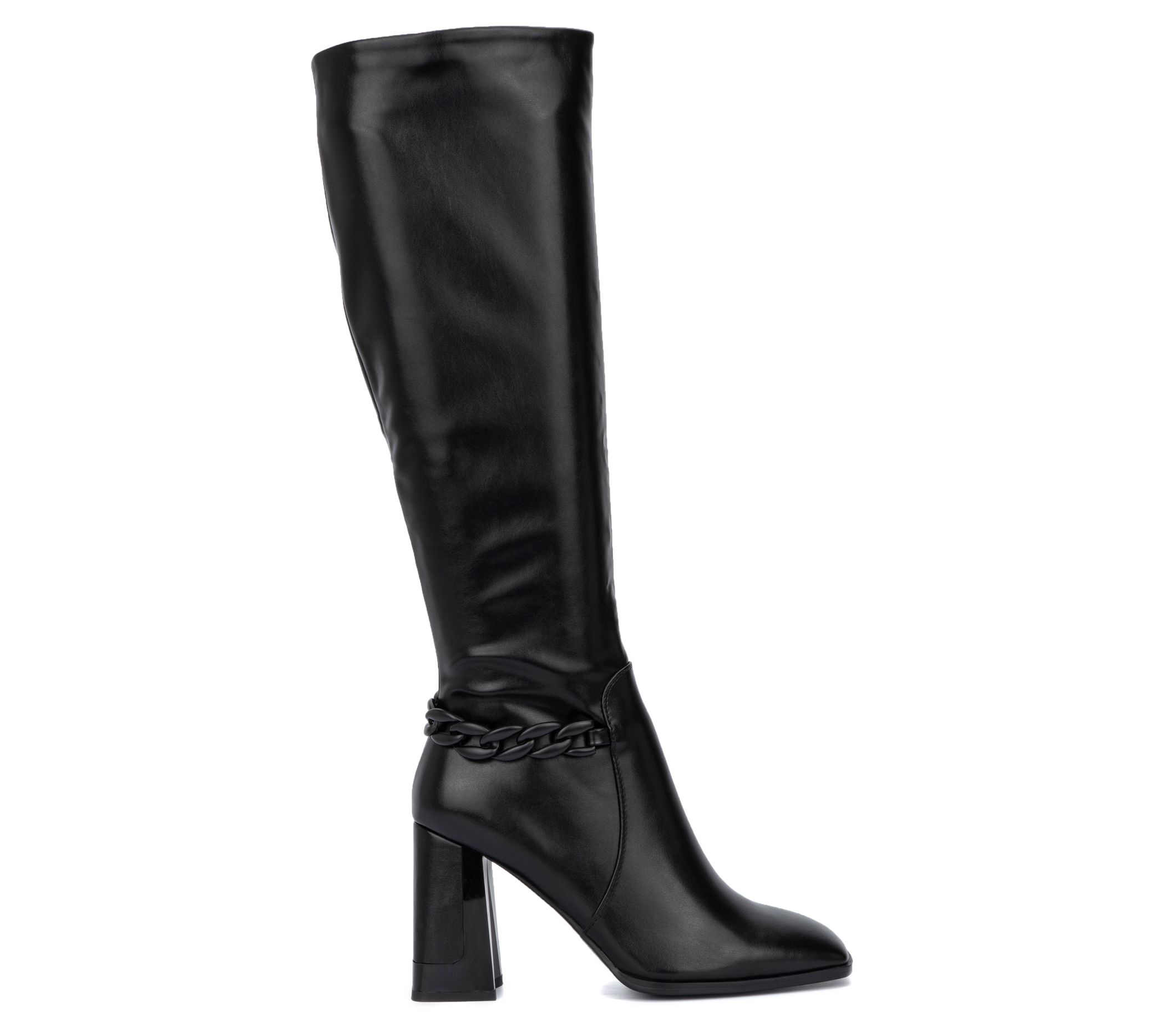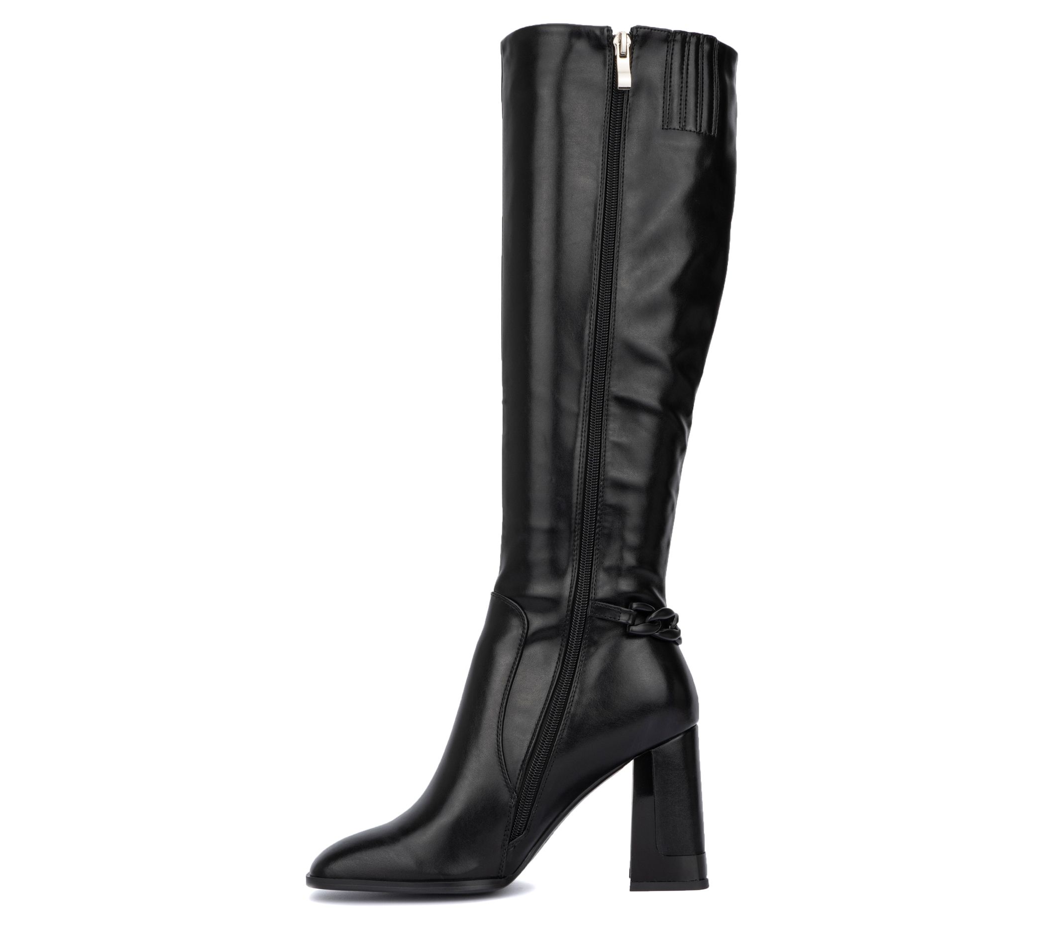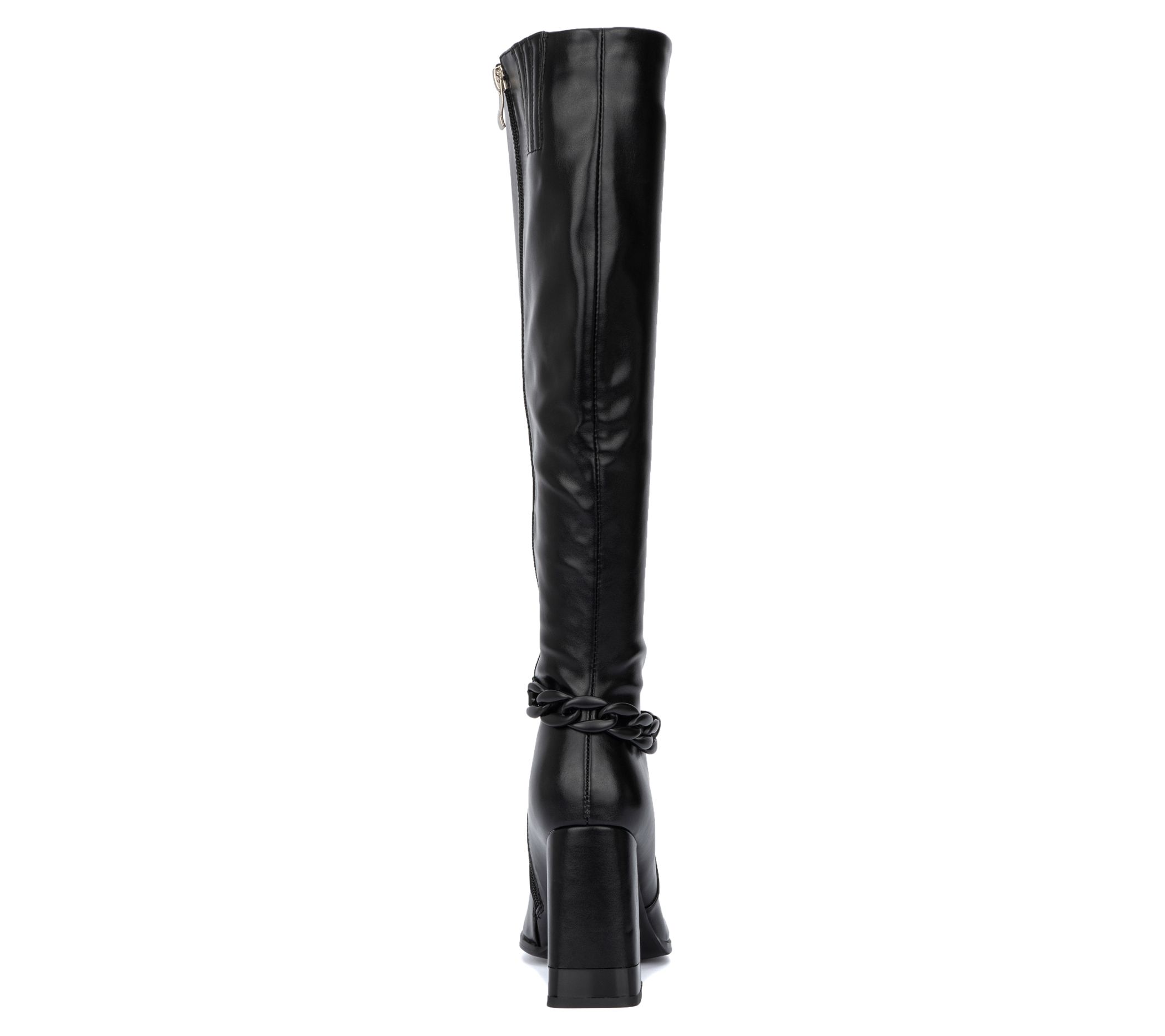 Combine comfort and style into one with this tall boot that elevates your ensemble to new heights. A side zip closure makes taking it on and off a breeze and a chain accent adds an edgy touch. From Torgeis.