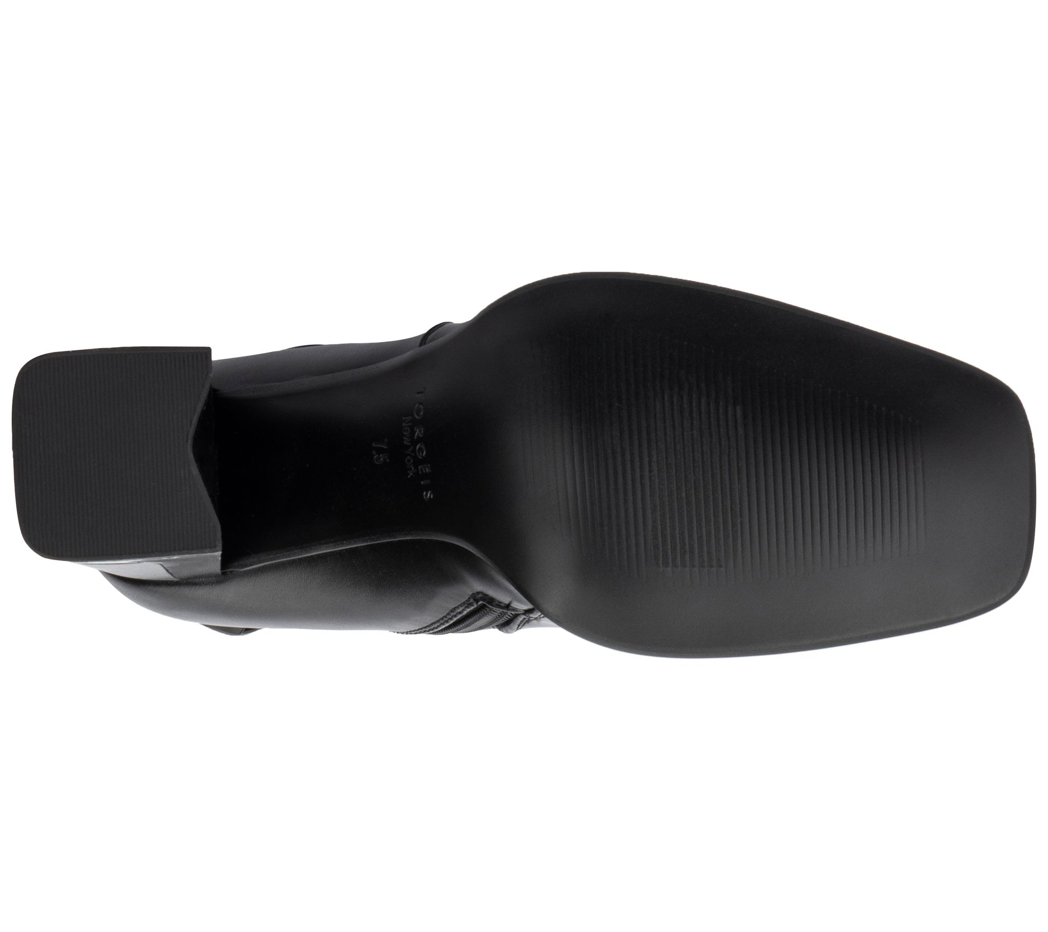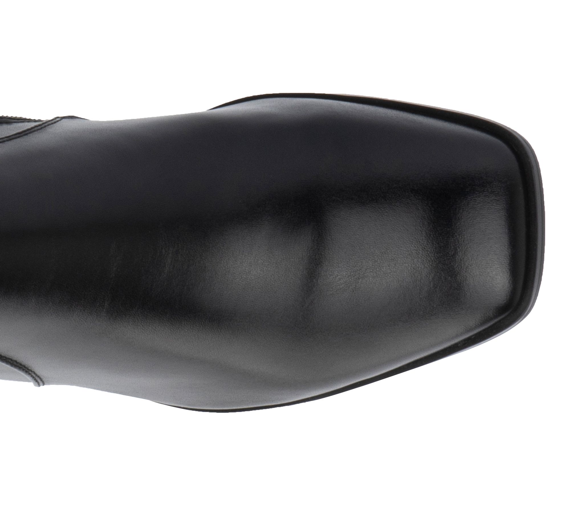 • Side zip closure, chain accent, square toe