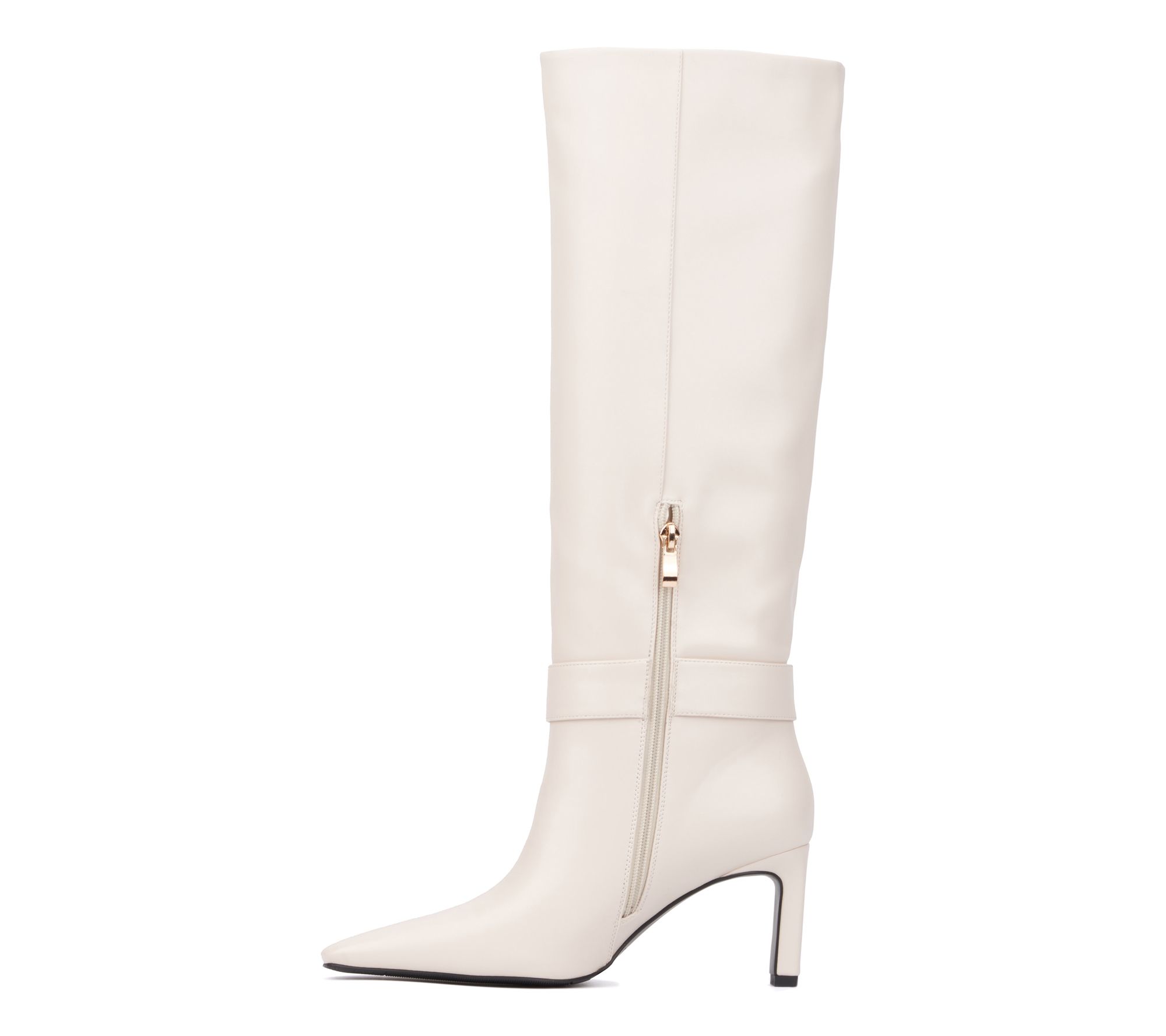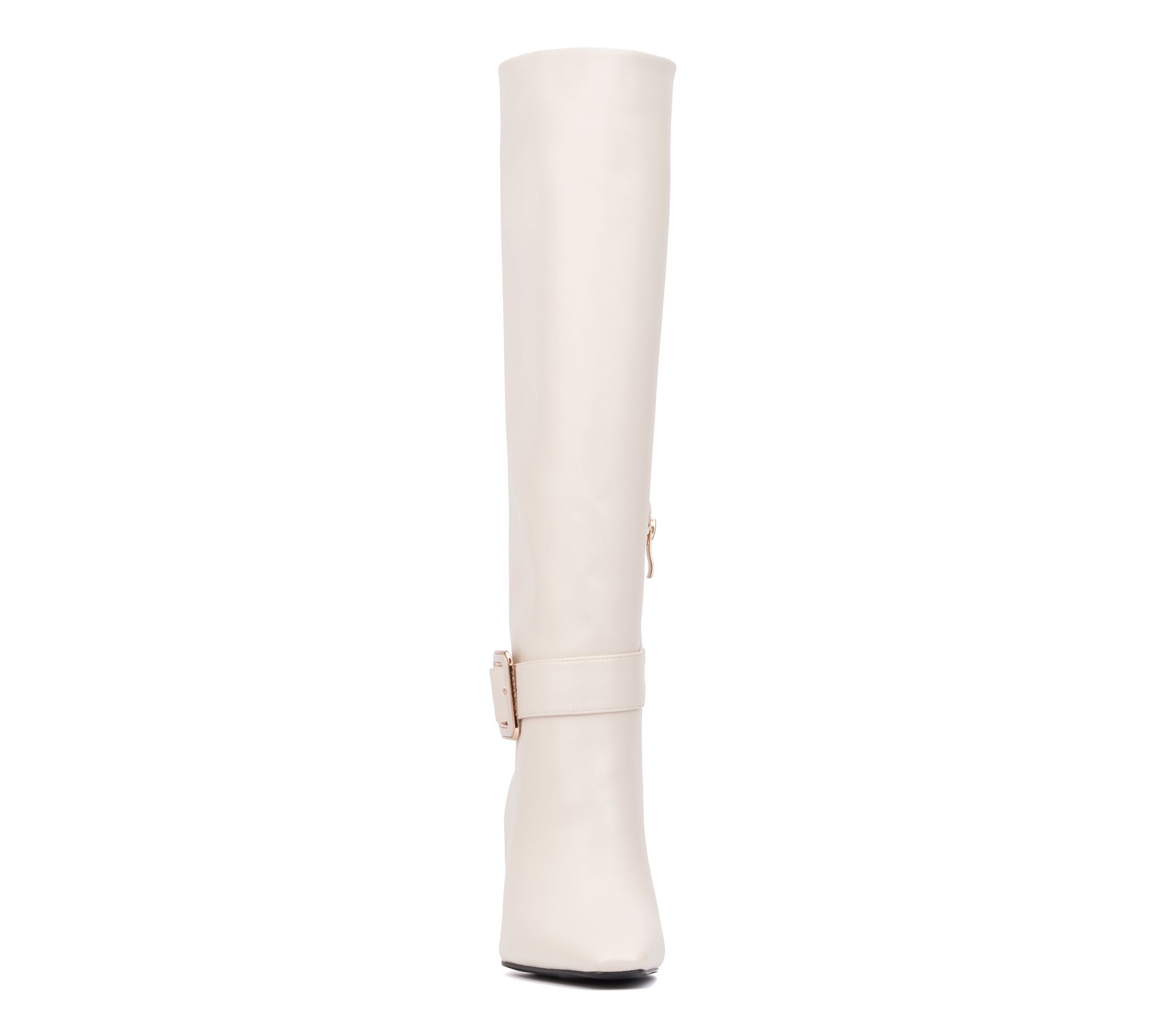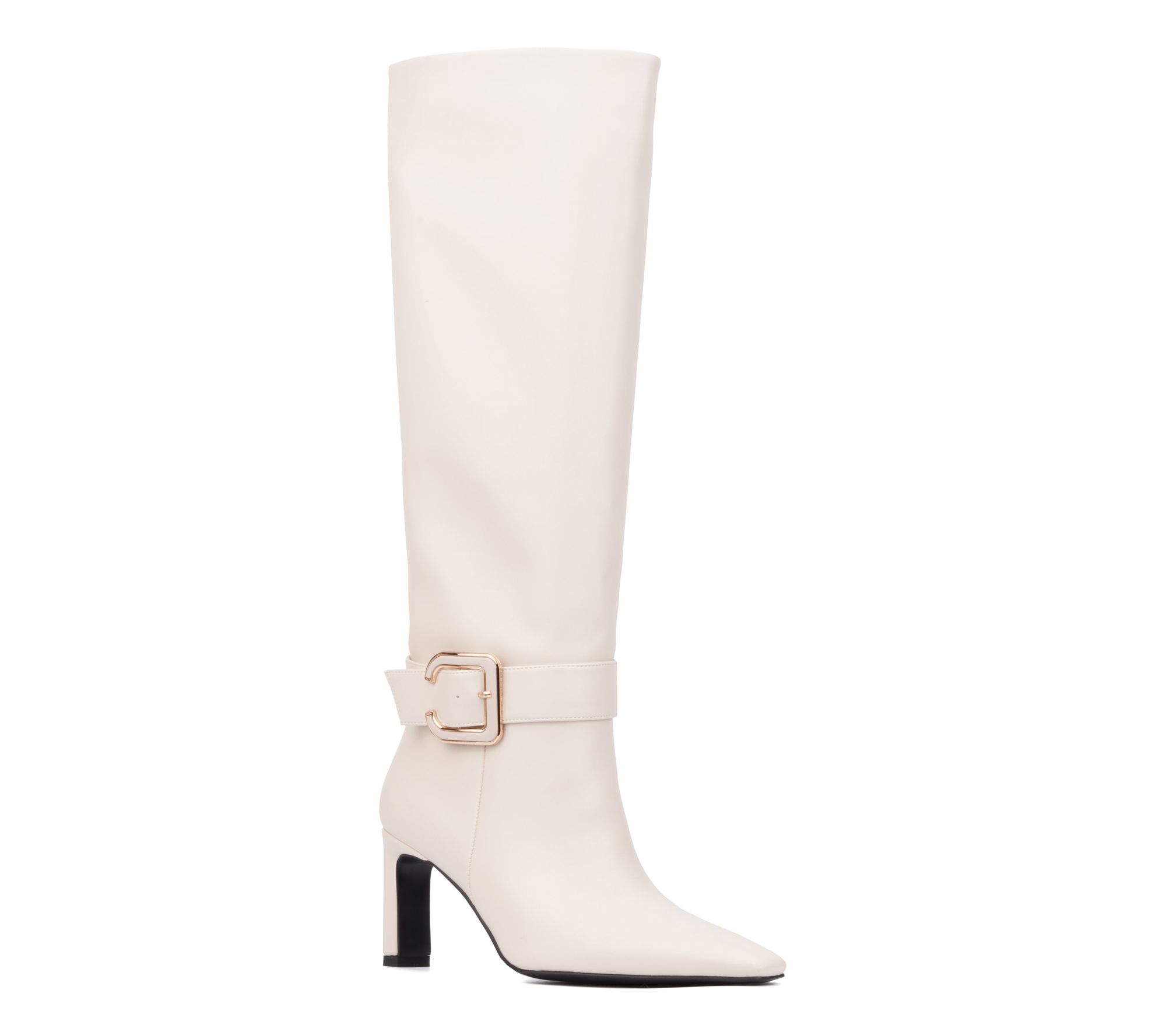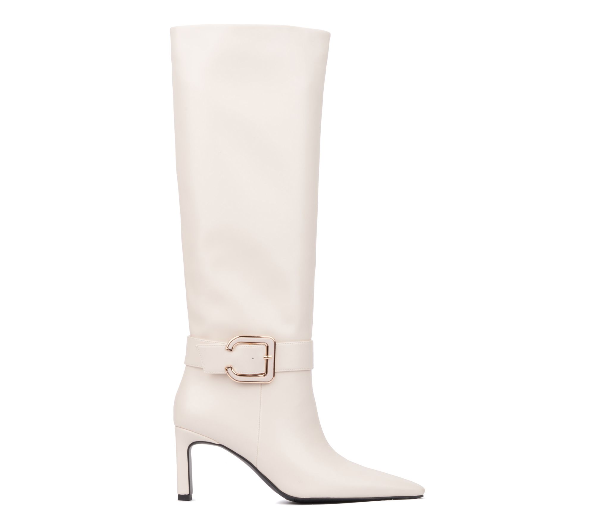 Introducing the Carlotta tall boot, where sleek design meets luxurious accents. These boots feature a striking goldtone buckle detail and elegant heel that will elevate any ensemble. Step into style and make a statement this season. From Torgeis.