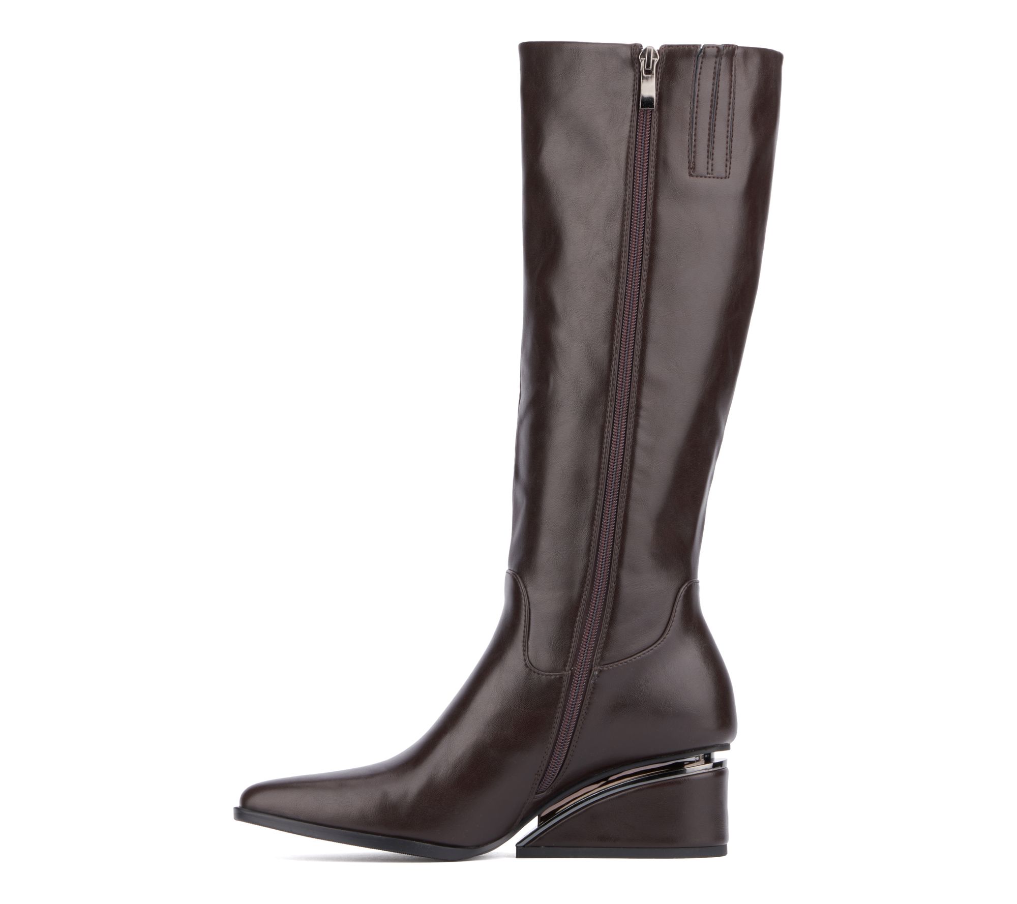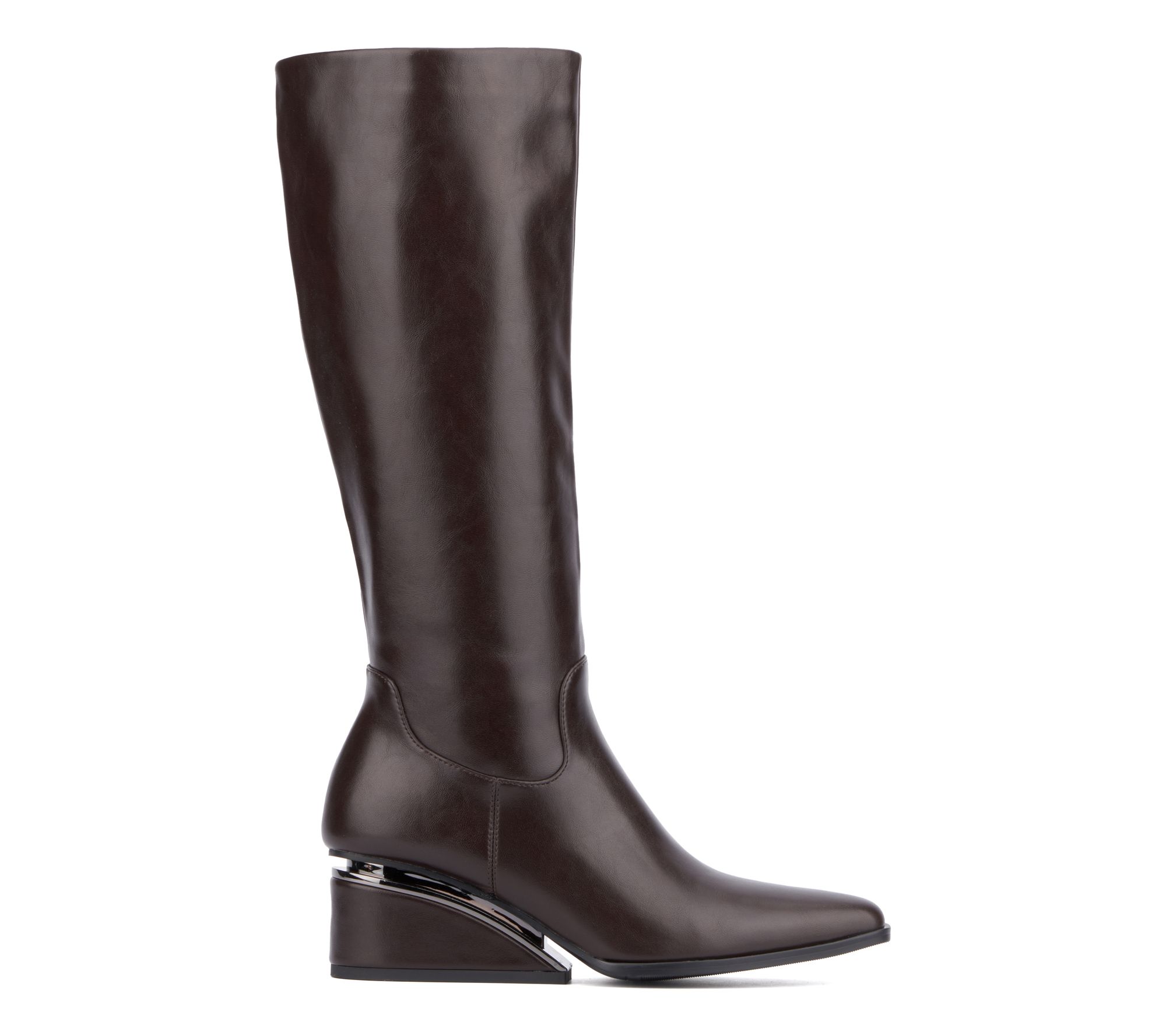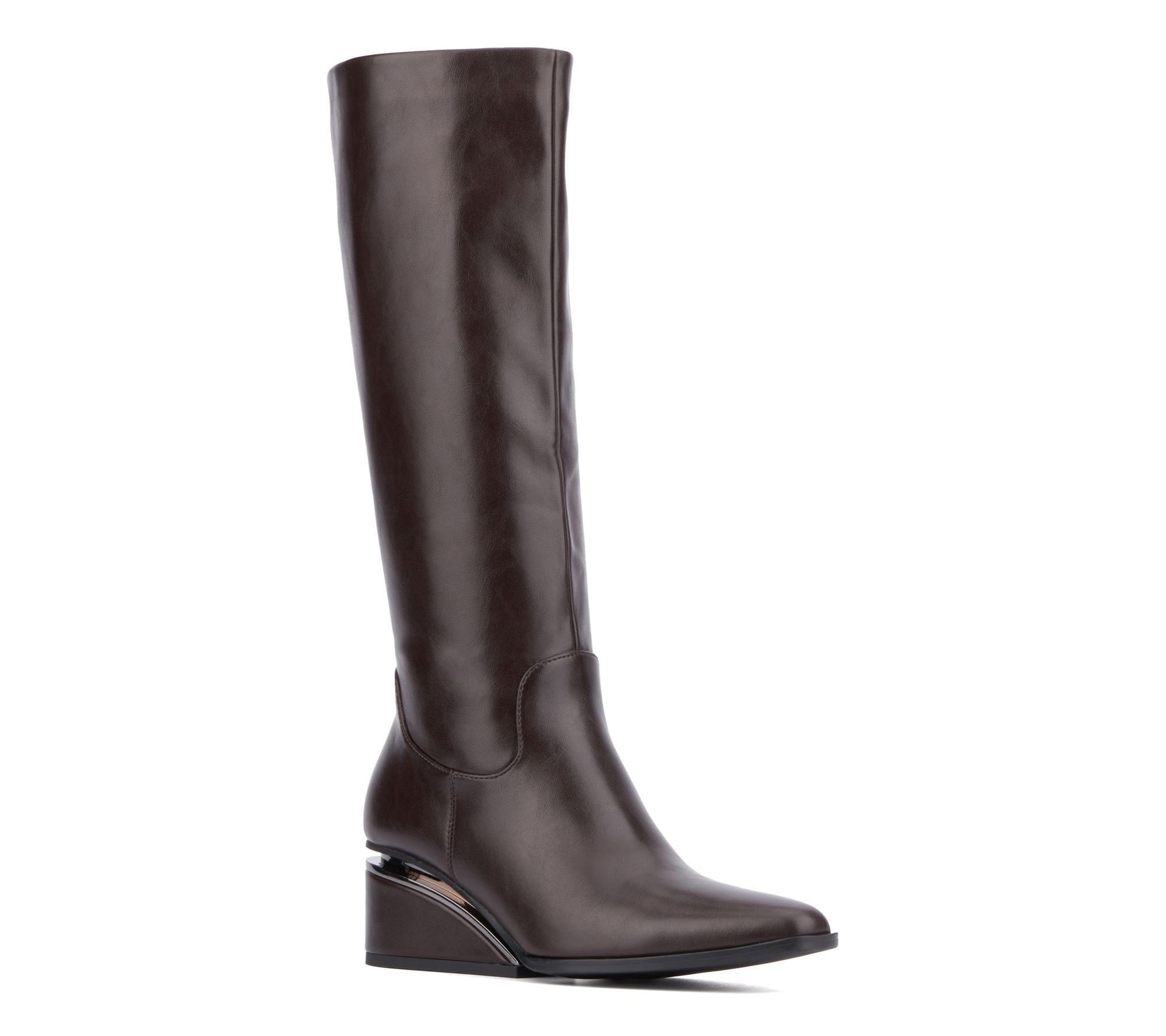 Step into adventure and style with the Torgeis Maegan tall shaft western-inspired boots. Combining rugged charm with modern sophistication, these boots feature a sleek wedge heel with metallic accents and a snip toe design, capturing the essence of the wild west with a contemporary twist. From Torgeis.