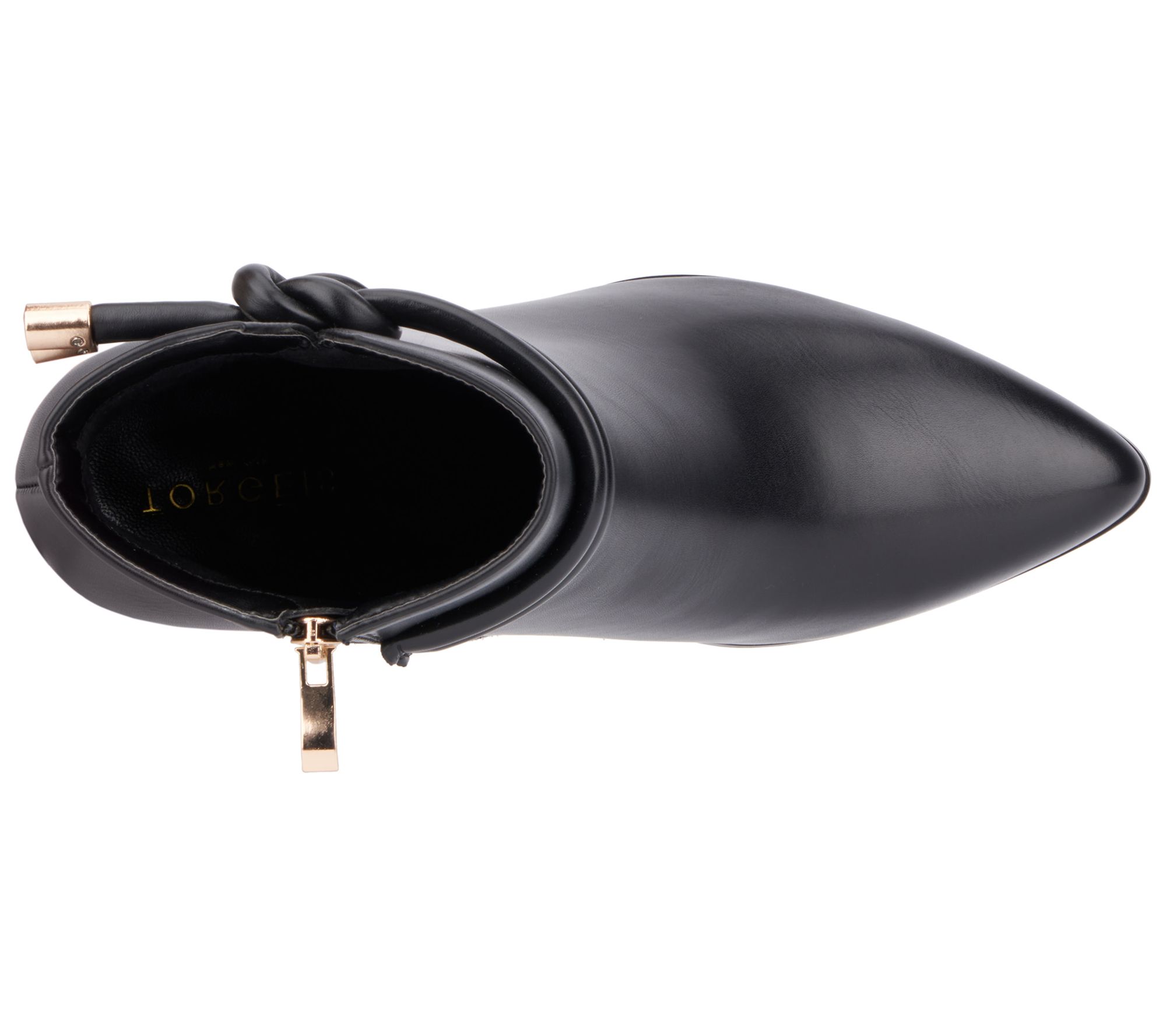 These chic ankle booties boast exquisite goldtone accents and an ankle strap tie detail, adding flair and versatility to your ensemble. Perfect for fall and winter, these boots ensure every step exudes confidence and elegance. From Torgeis.