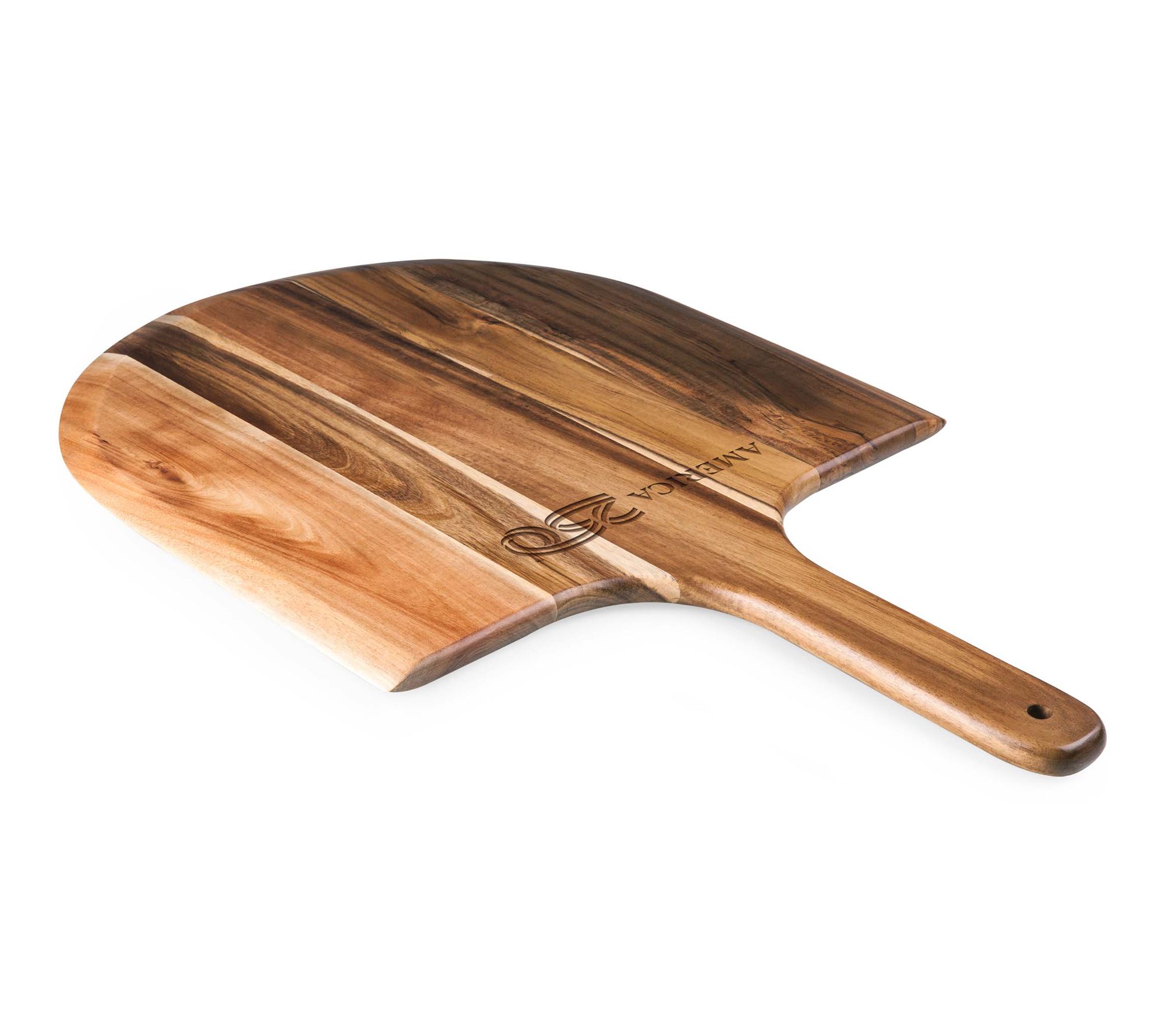 Serve up pizza night in style with this acacia wood pizza peel -- ideal for transferring pizzas to and from the oven and for use as an eye-catching serving plank. Its comfortable tapered handle offers a steady grip, while the integrated hanging hole makes storage simple. From Toscana.
